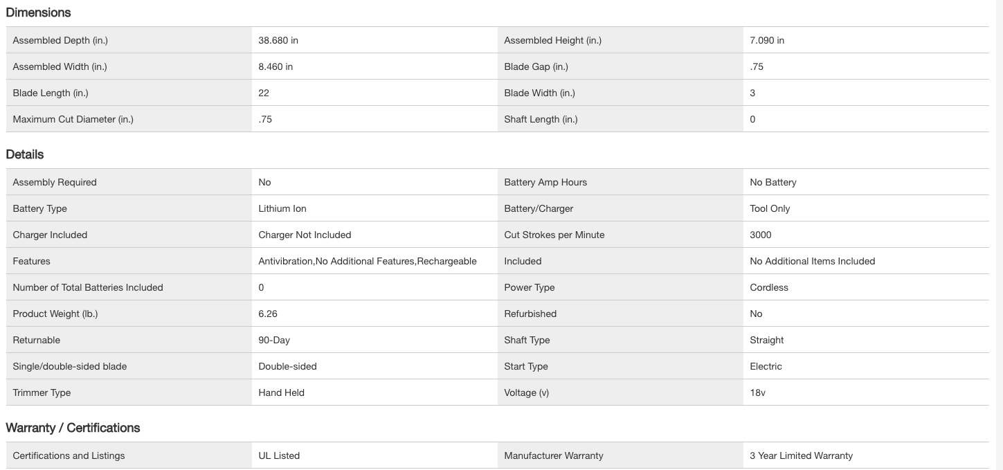 RYOBI P2606BTLVNM ONE+ 18V 22 in. Cordless Battery Hedge Trimmer (Tool Only)