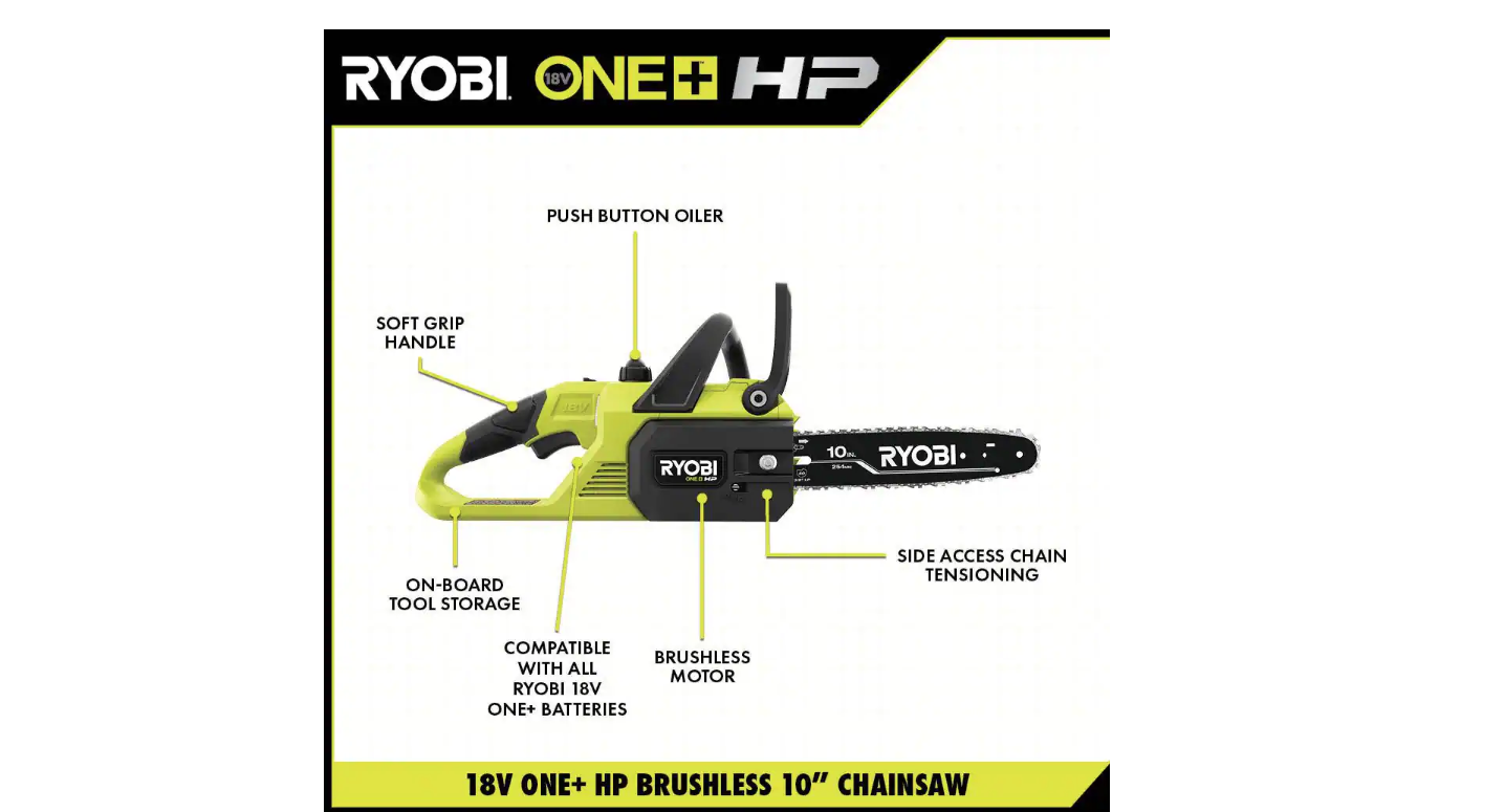 RYOBI P2502BTL ONE+ HP 18V Brushless 10 in. Cordless Battery Chainsaw (Tool Only)
