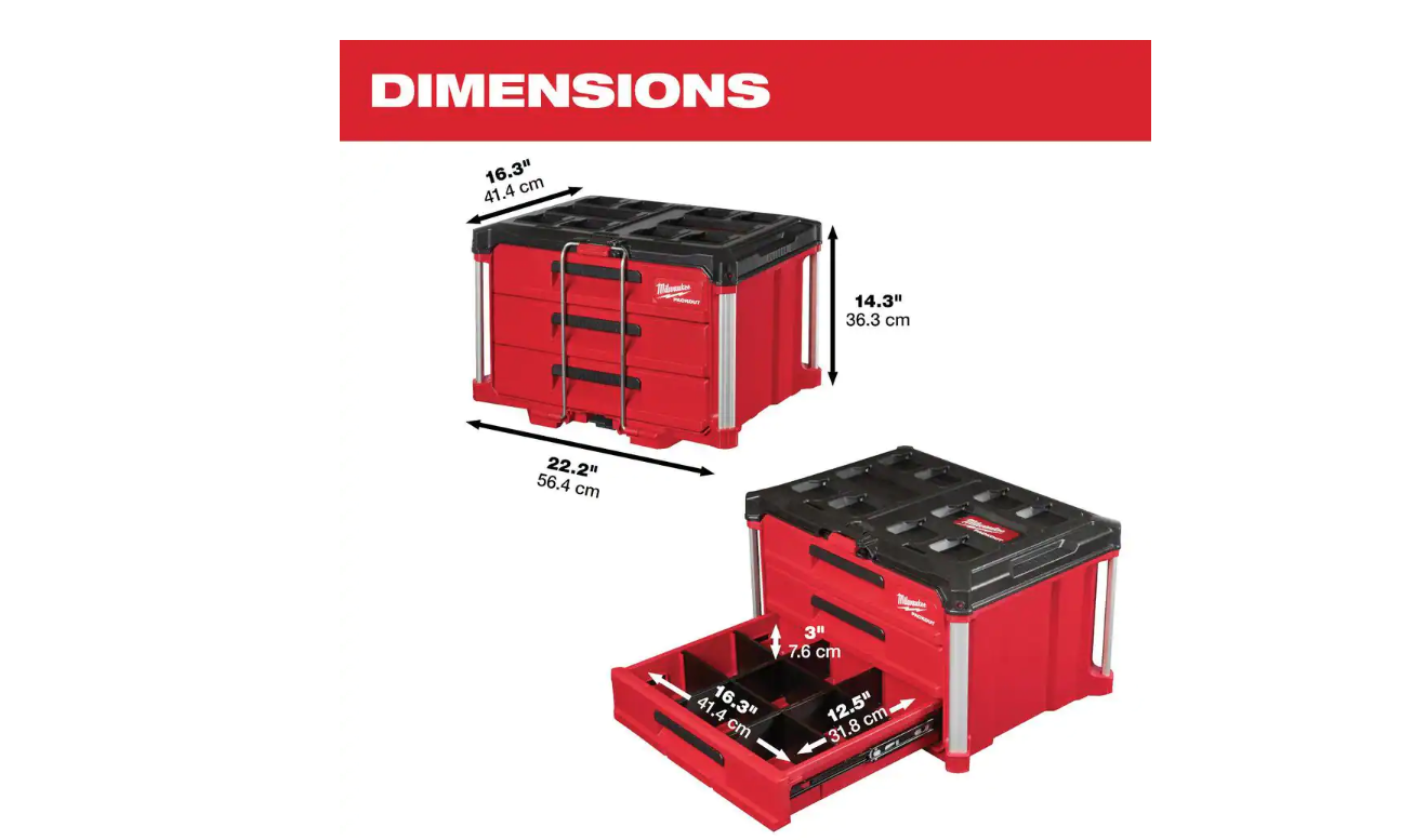 Milwaukee 48-22-8443 PACKOUT 22 in. Modular 3-Drawer Tool Box with Metal Reinforced Corners