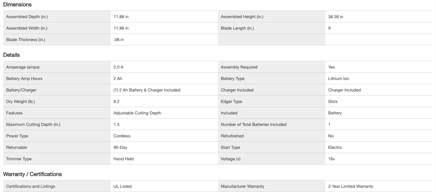 RYOBI P2310 ONE+ 18V 9 in. Cordless Battery Edger with 2.0 Ah Battery and Charger