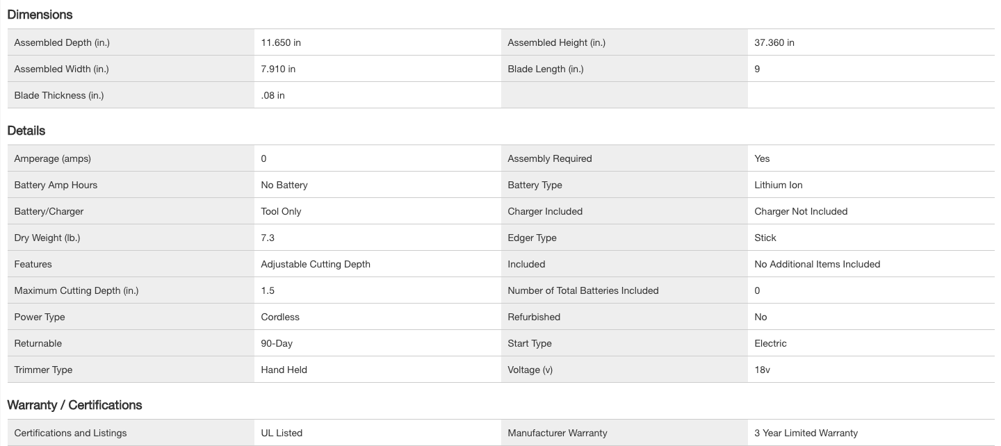 RYOBI P2300A ONE+ 18V 9 in. Cordless Battery Edger (Tool Only)