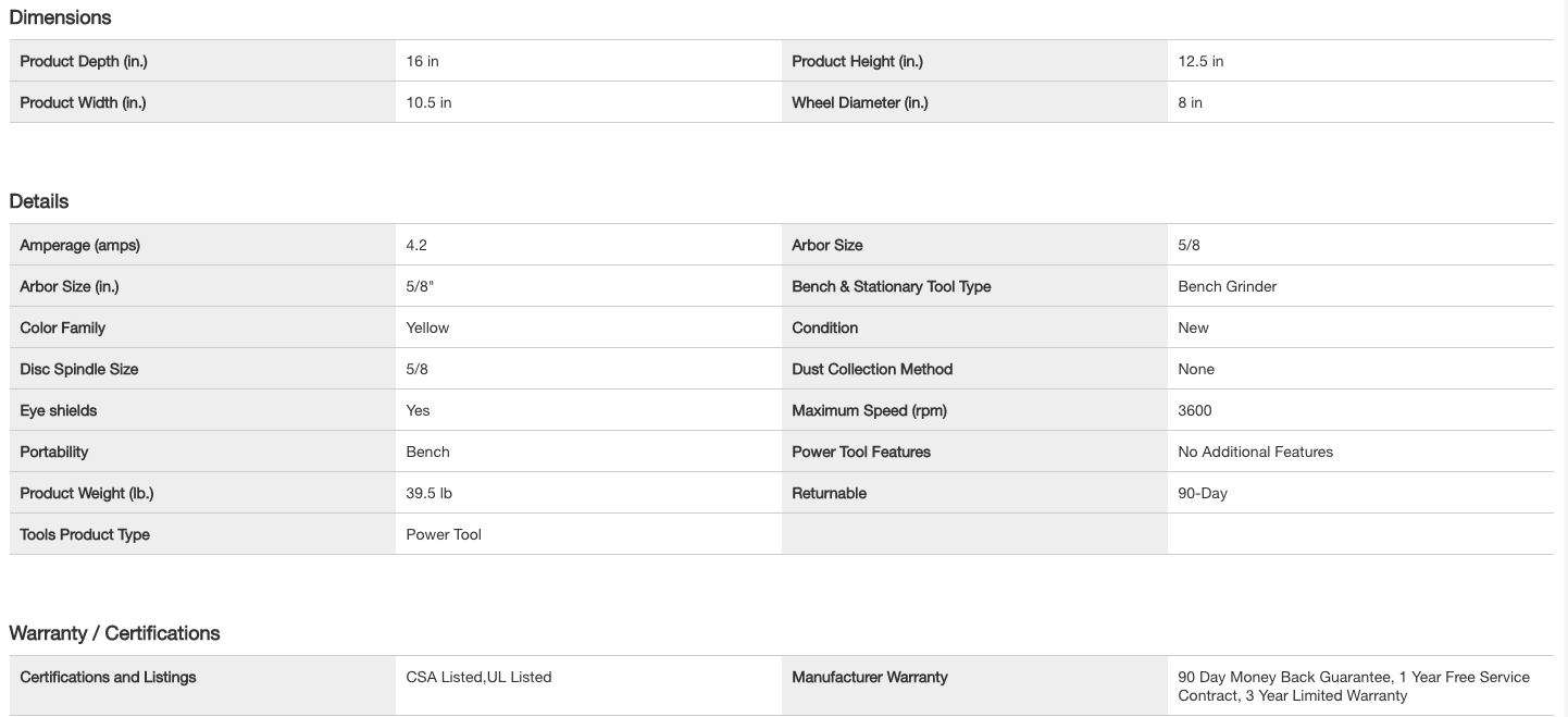 DEWALT DW758 8 in. 205 mm Bench Grinder