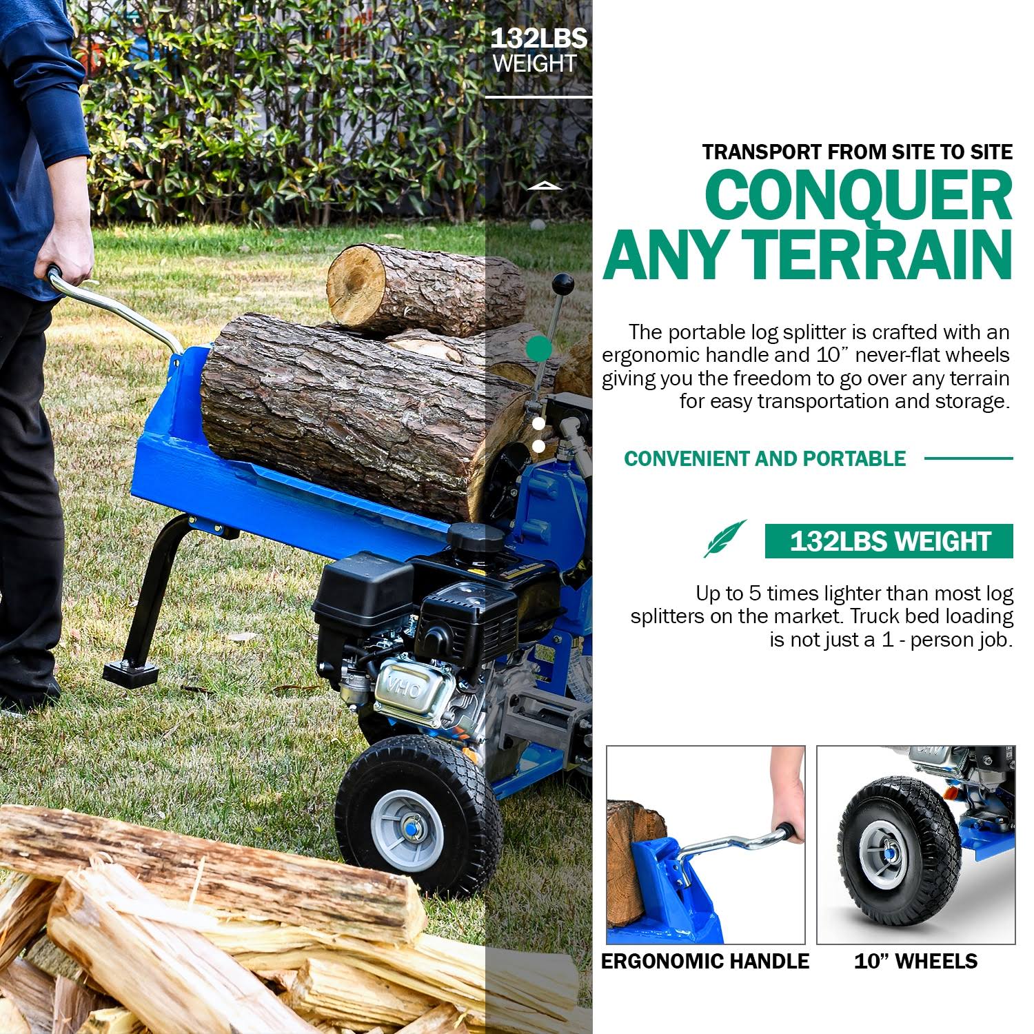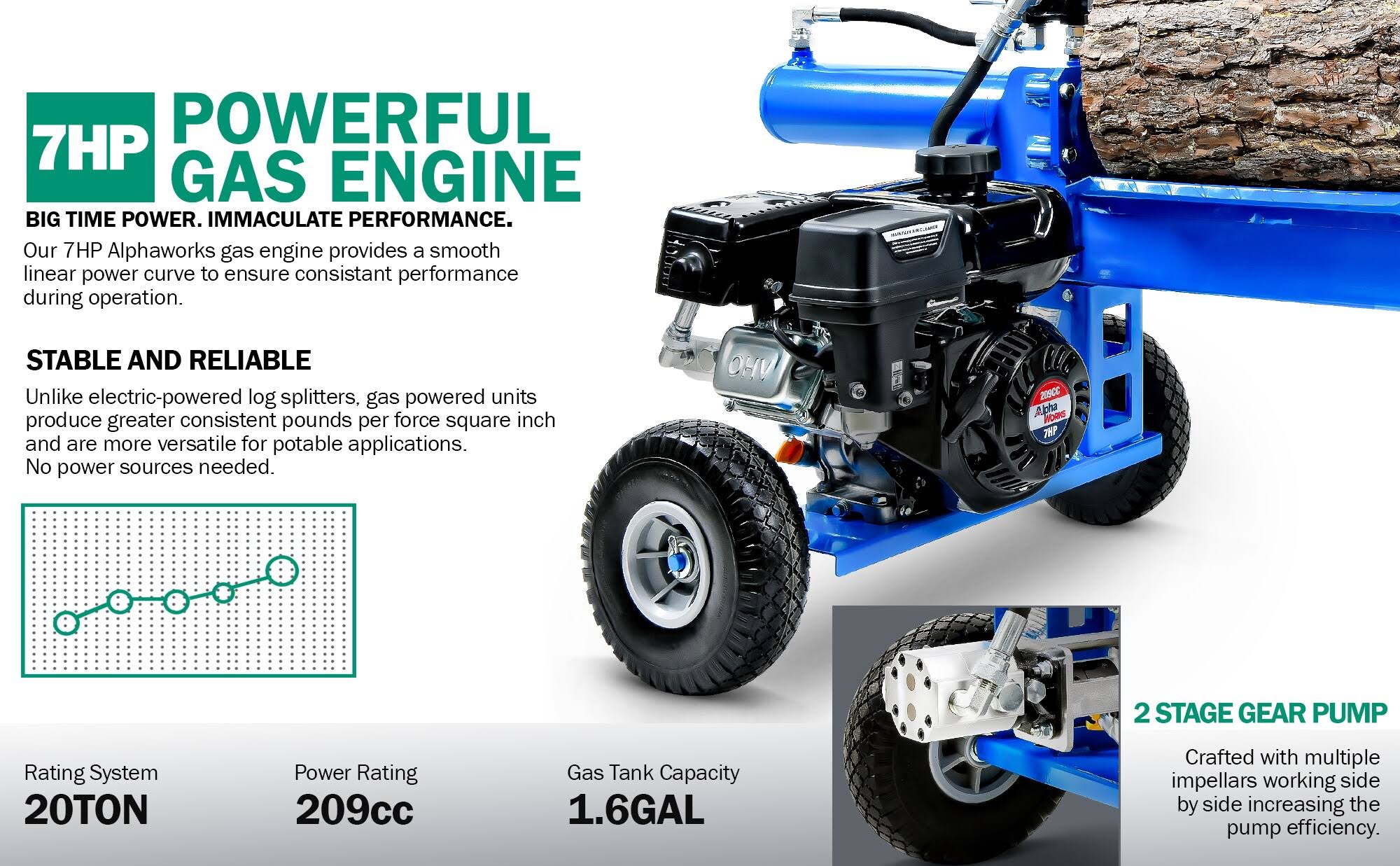 Landworks TRI-GUO079 7 HP GAS Powered Hydraulic Log Splitter