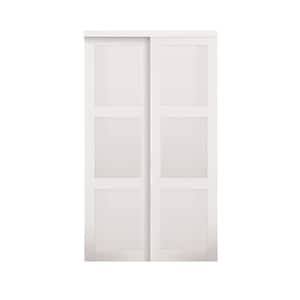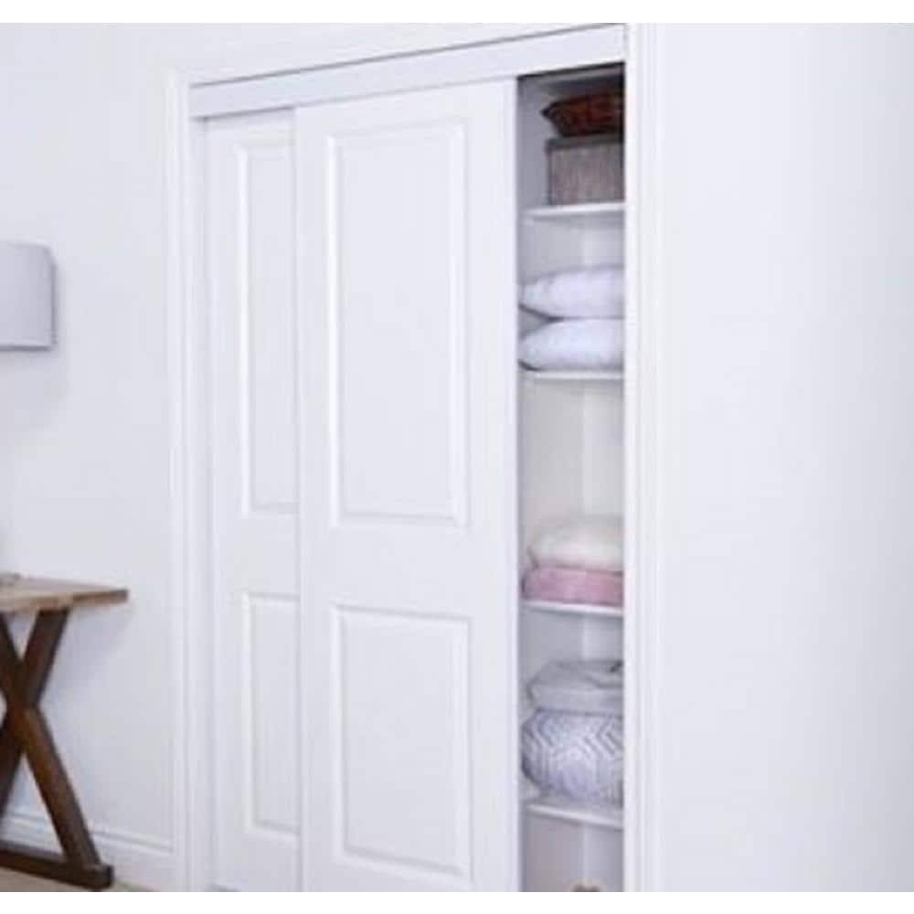 TRUporte 59 in. x 80 in. 108 Series Primed 2 Panel Square Top Design Primed MDF Bypass Sliding Door