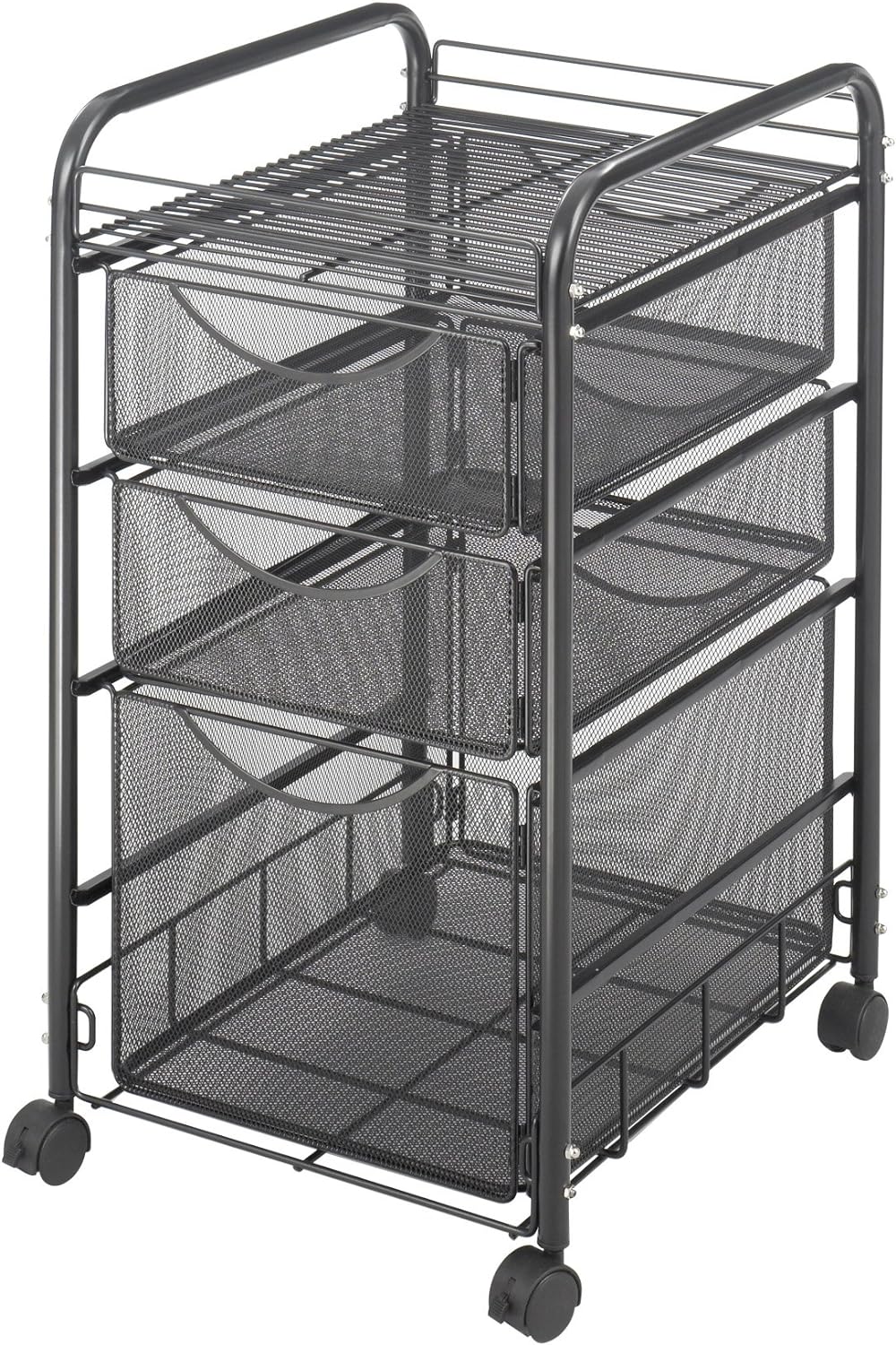 Safco Products 5213BL Onyx Mesh 1 File Drawer and 2 Small Drawers Mobile Rolling File Cart. Durable Steel Mesh Construction; Swivel Wheels for Mobility; Black Powder Coat Finish