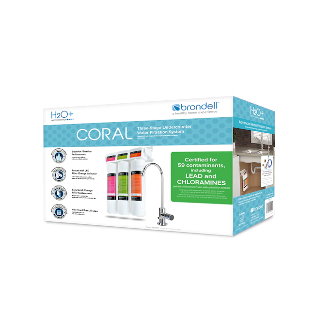 Brondell H2O+ Coral UC300 Three-Stage Under counter Water Filtration System – Water Purifier with Designer Chrome Faucet – Quick Change Filter. WQA Gold Seal-Certified