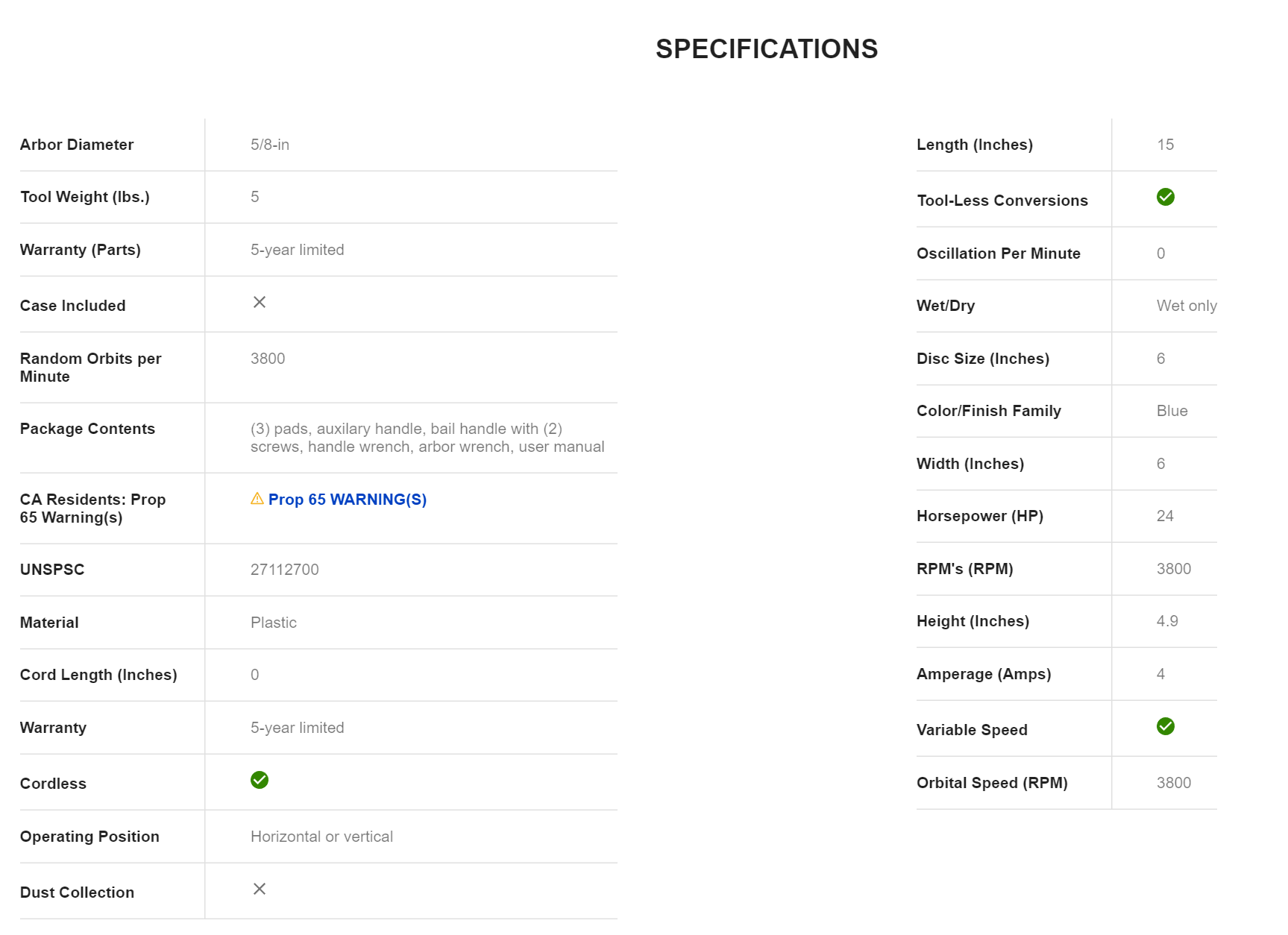 Kobalt KPO 124B-03 6-in Variable Speed Cordless Polisher