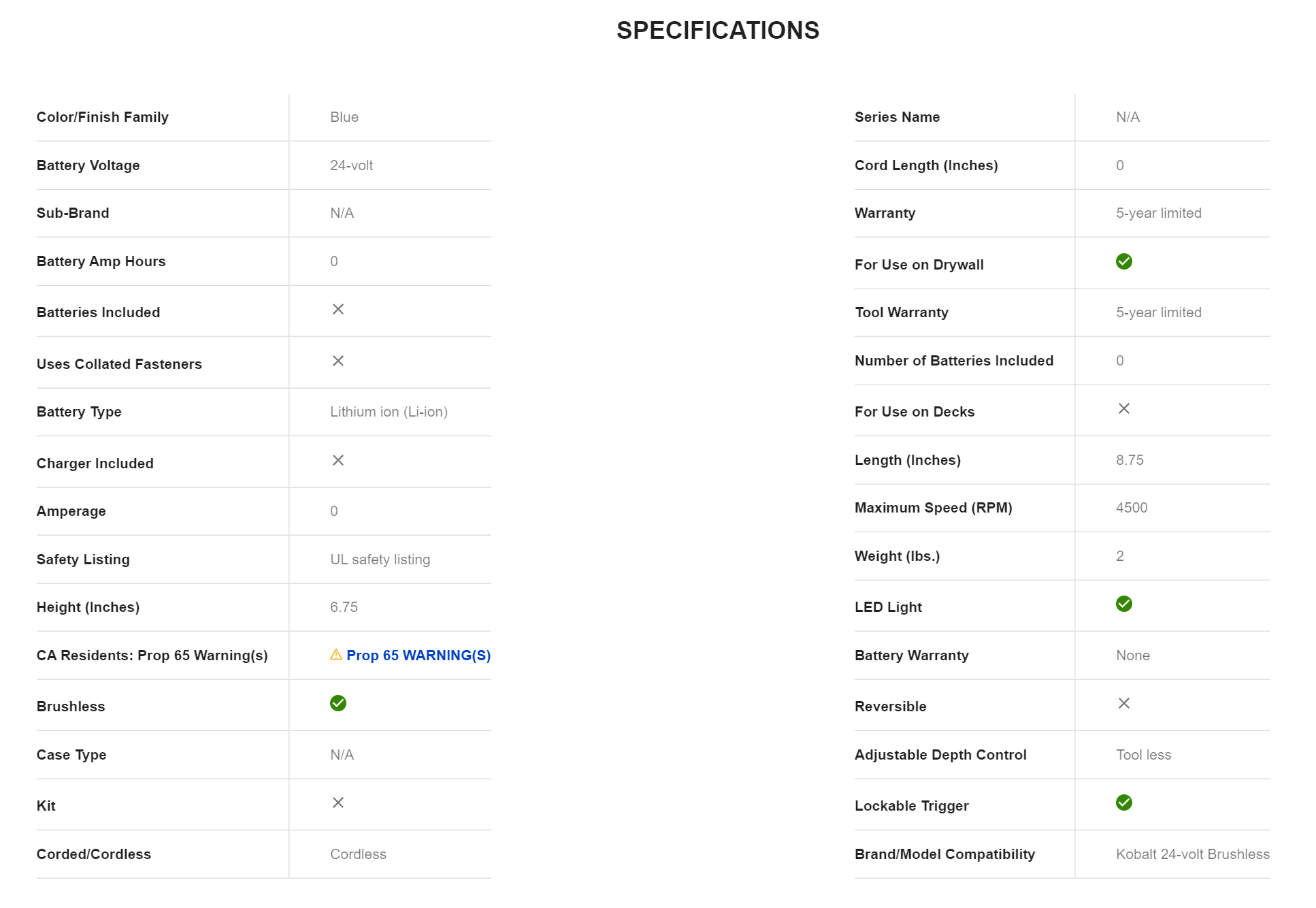 Kobalt KDS 124B-03 24-volt Lithium Ion (li-ion) Brushless Screw Gun
