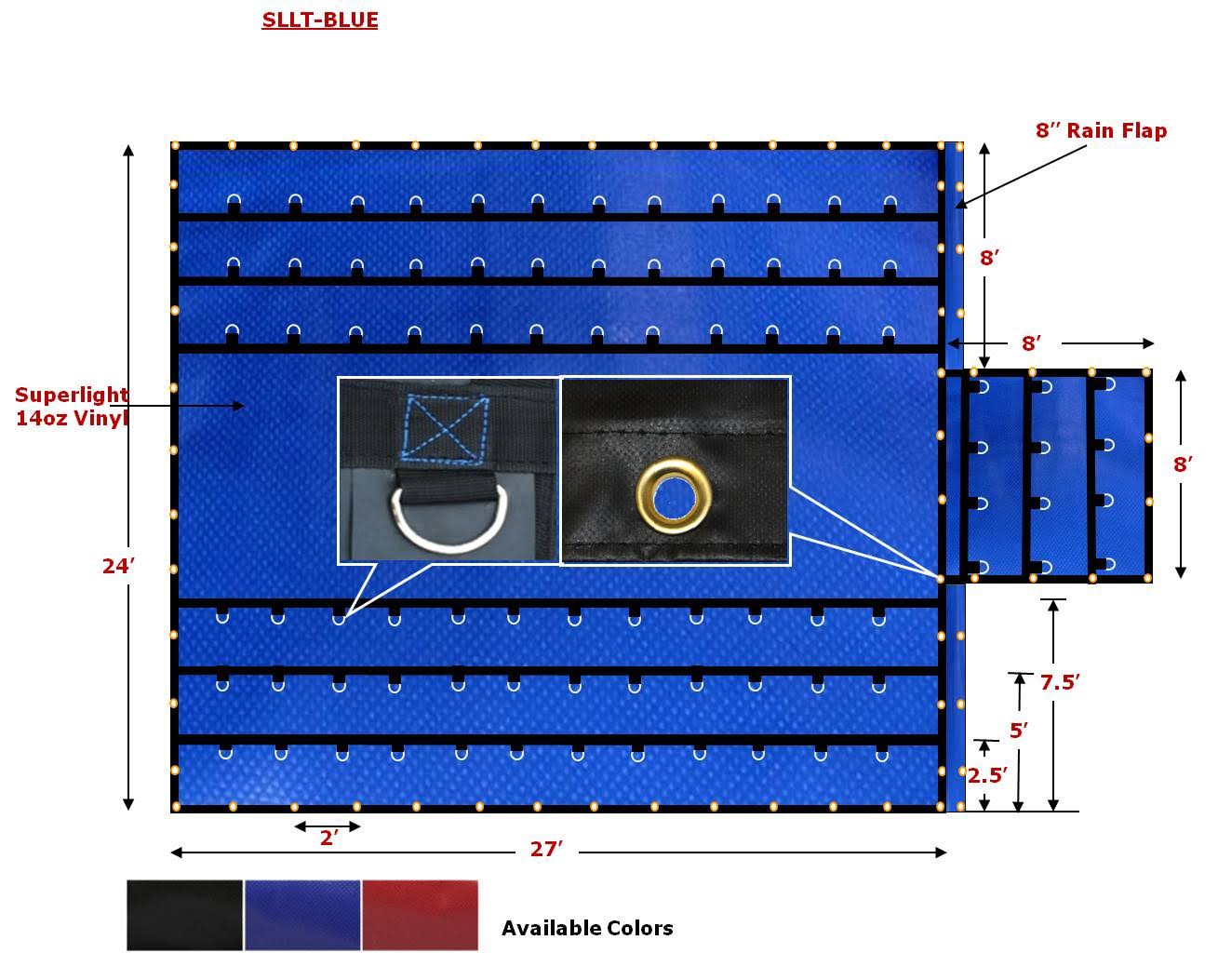 Blue Superlight 14oz Flatbed Trailer Lumber Steel Tarp 24x27 (8' Drop)