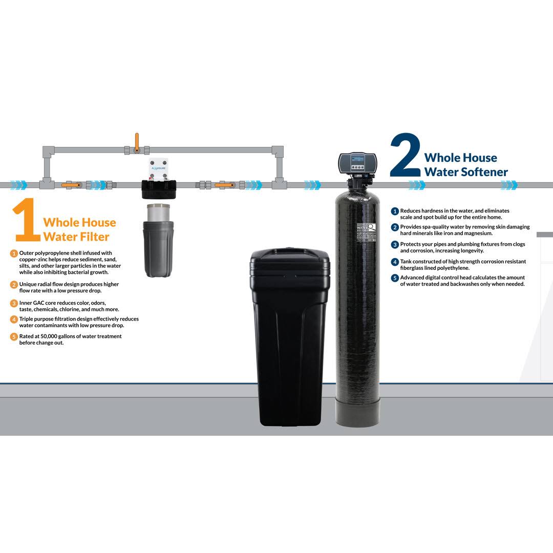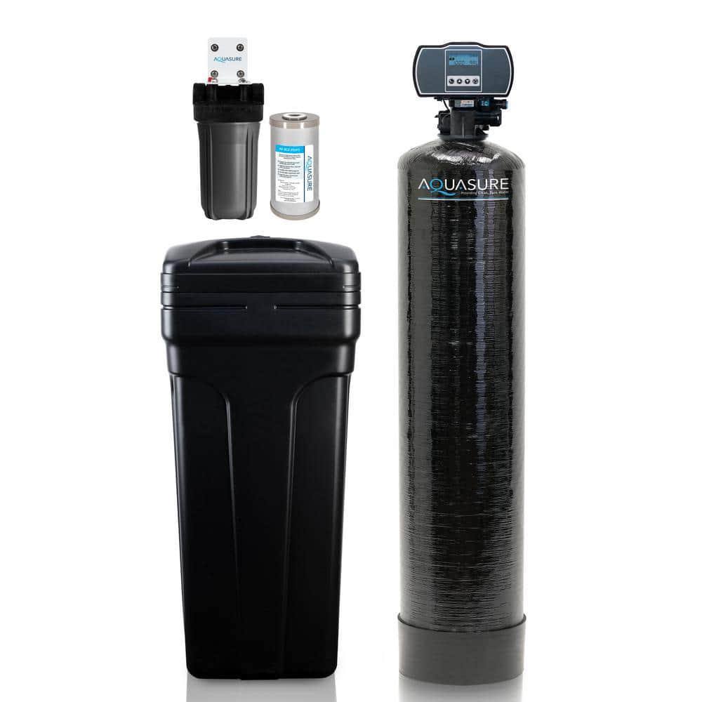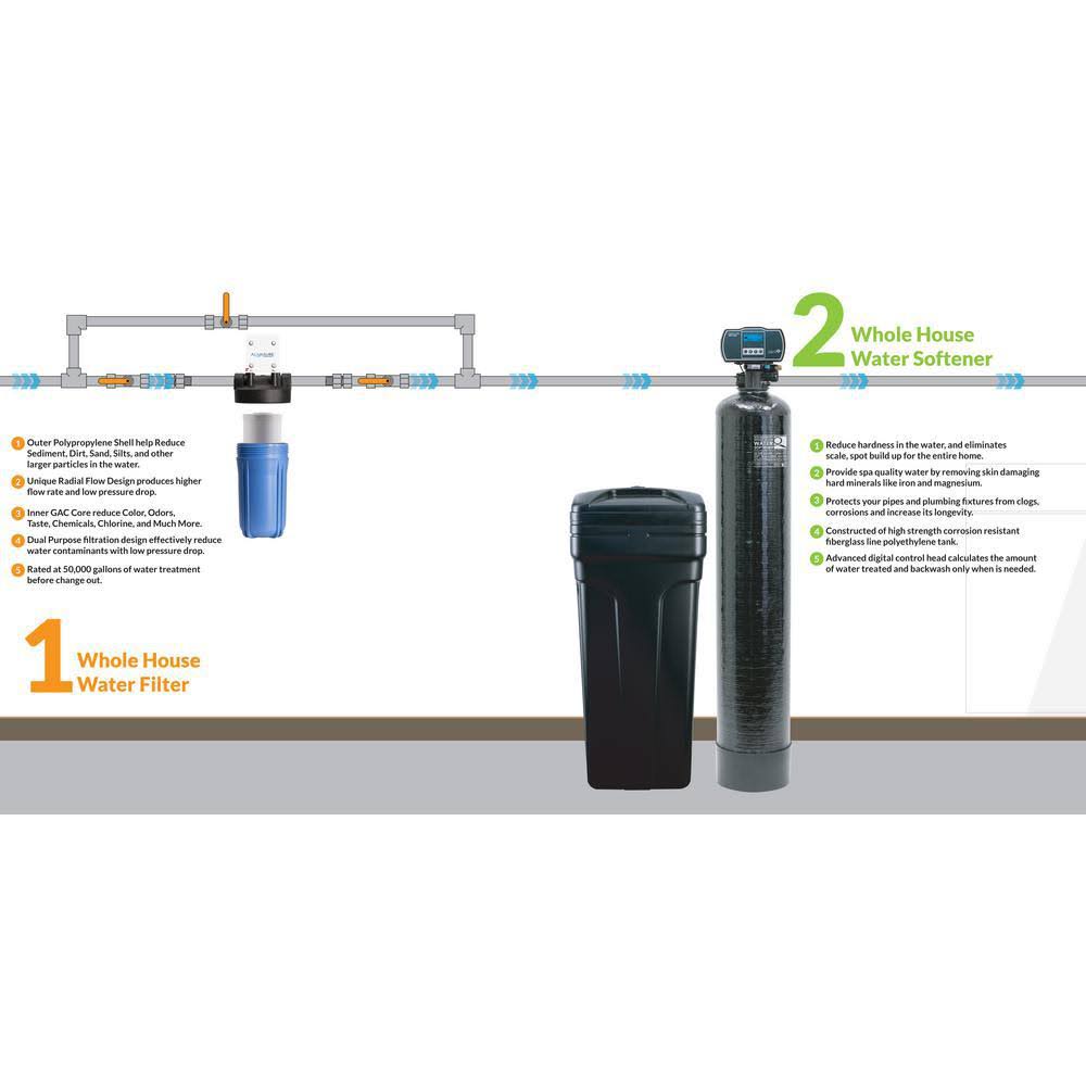 Aquasure 64,000 Grains Water Softener w/Aquatrol Digital Head and 10" Sediment Dual Purpose Whole House Water Filter