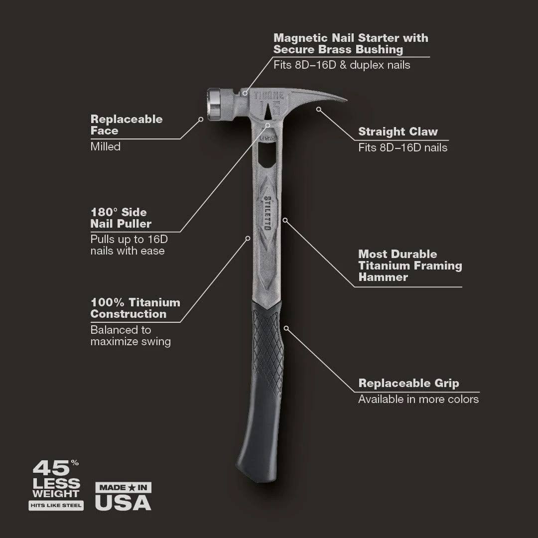 Stiletto TIB15MC TiBone 15oz Milled/Curved Titanium Framing Hammer