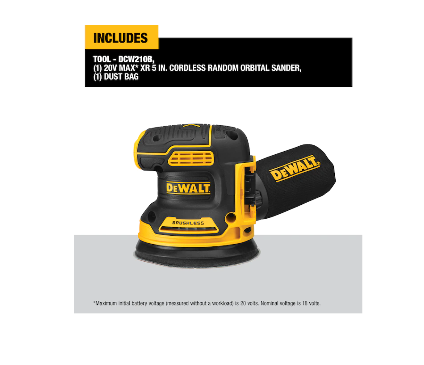 DEWALT DCW210B 20-Volt Brushless Cordless Variable Speed Random Orbital Sander with Dust Management