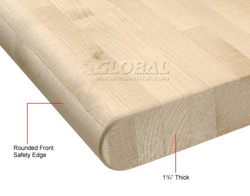 72"W x 30"D x 1-3/4" Thick Maple Butcher Block Safety Edge Workbench Top