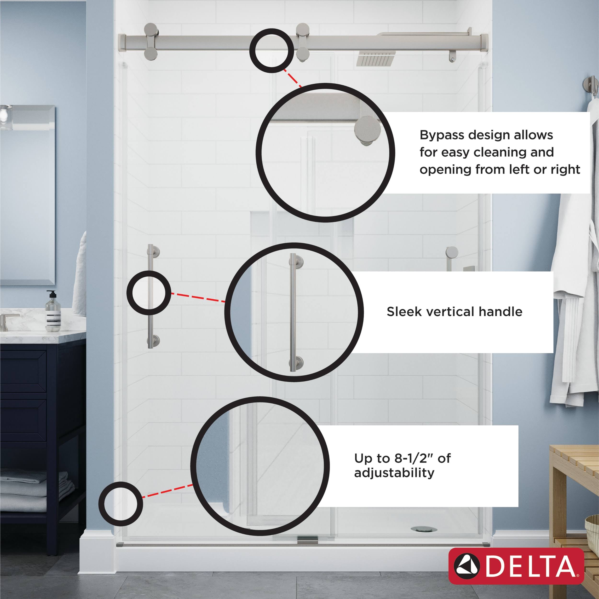 Delta Paxos 60 in. W x 76 in. H Sliding Frameless Shower Door in Chrome with 5/16 in. 8 mm Clear Glass