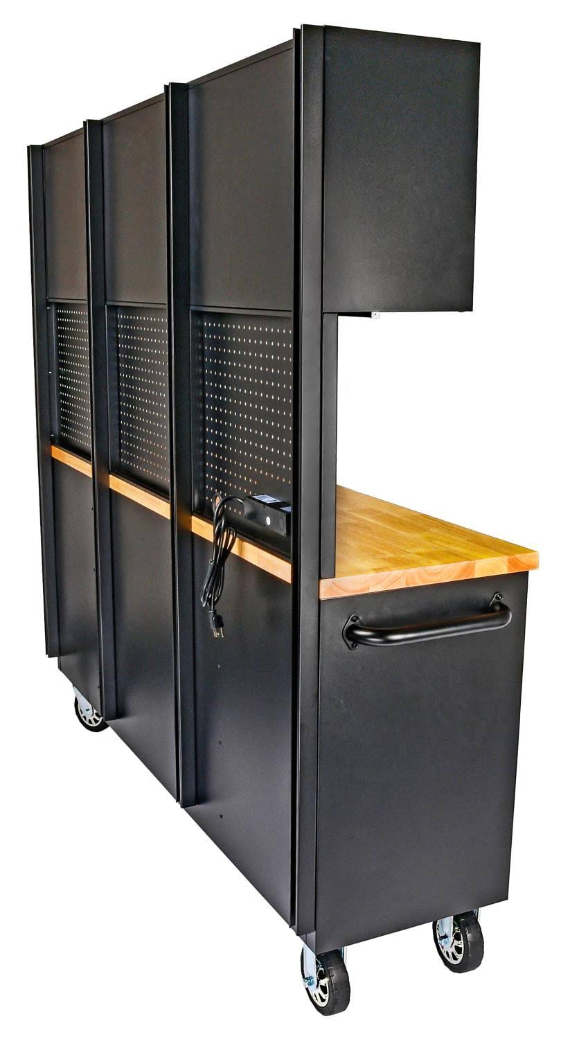 JEGS 81453 72 in. 15-Drawer Rolling Tool Cabinet with Upper Storage [Black]
