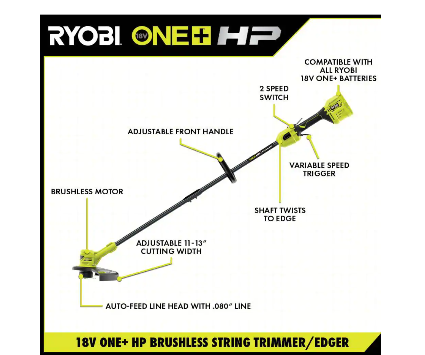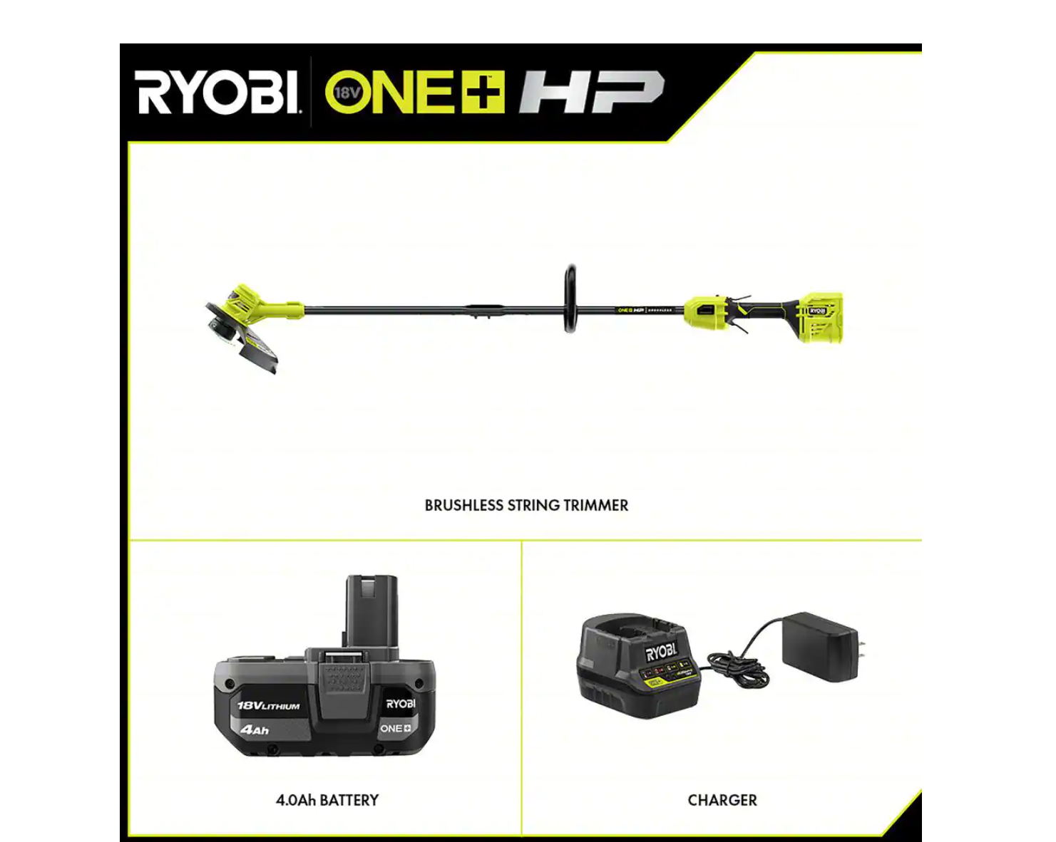 RYOBI P20120VNM ONE+ HP 18V Brushless 13 in. Cordless Battery String Trimmer with 4.0 Ah Battery and Charger