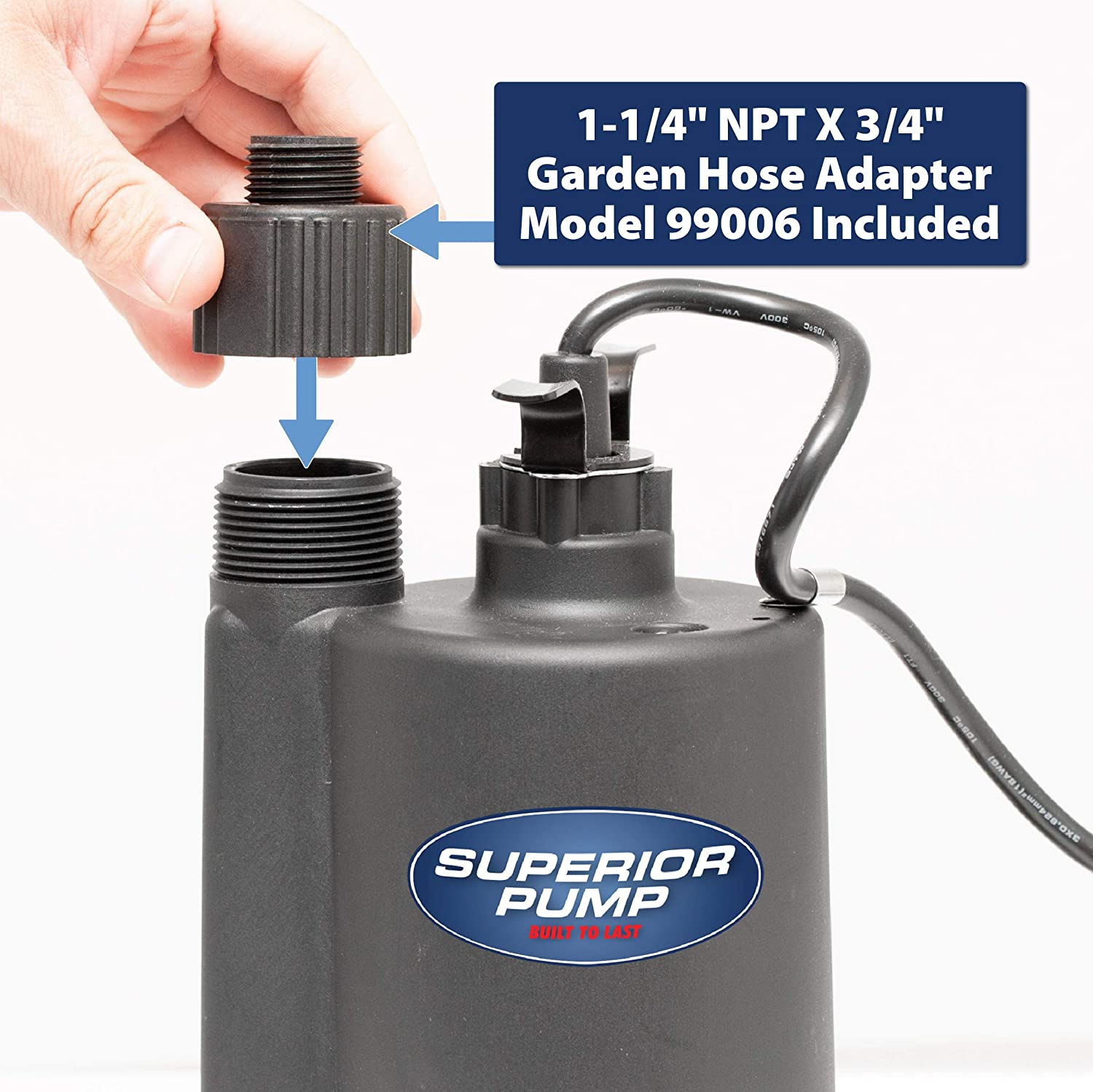 Superior Pump 91330 1/3 HP Thermoplastic Submersible Utility Pump with 10-Foot Cord
