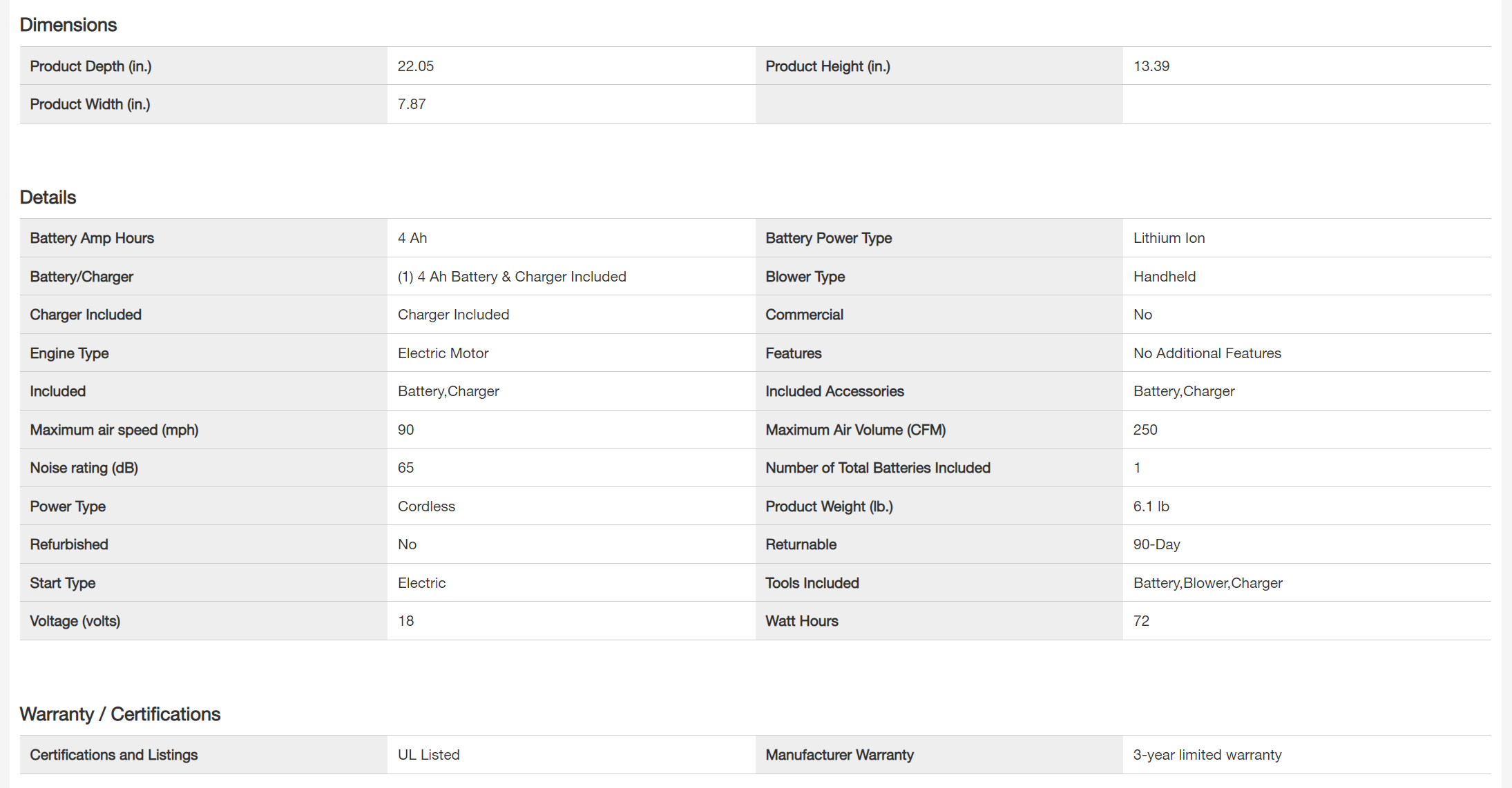 RYOBI P21110VNM ONE+ 18V 90 MPH 250 CFM Cordless Battery Leaf Blower with 4.0 Ah Battery and Charger