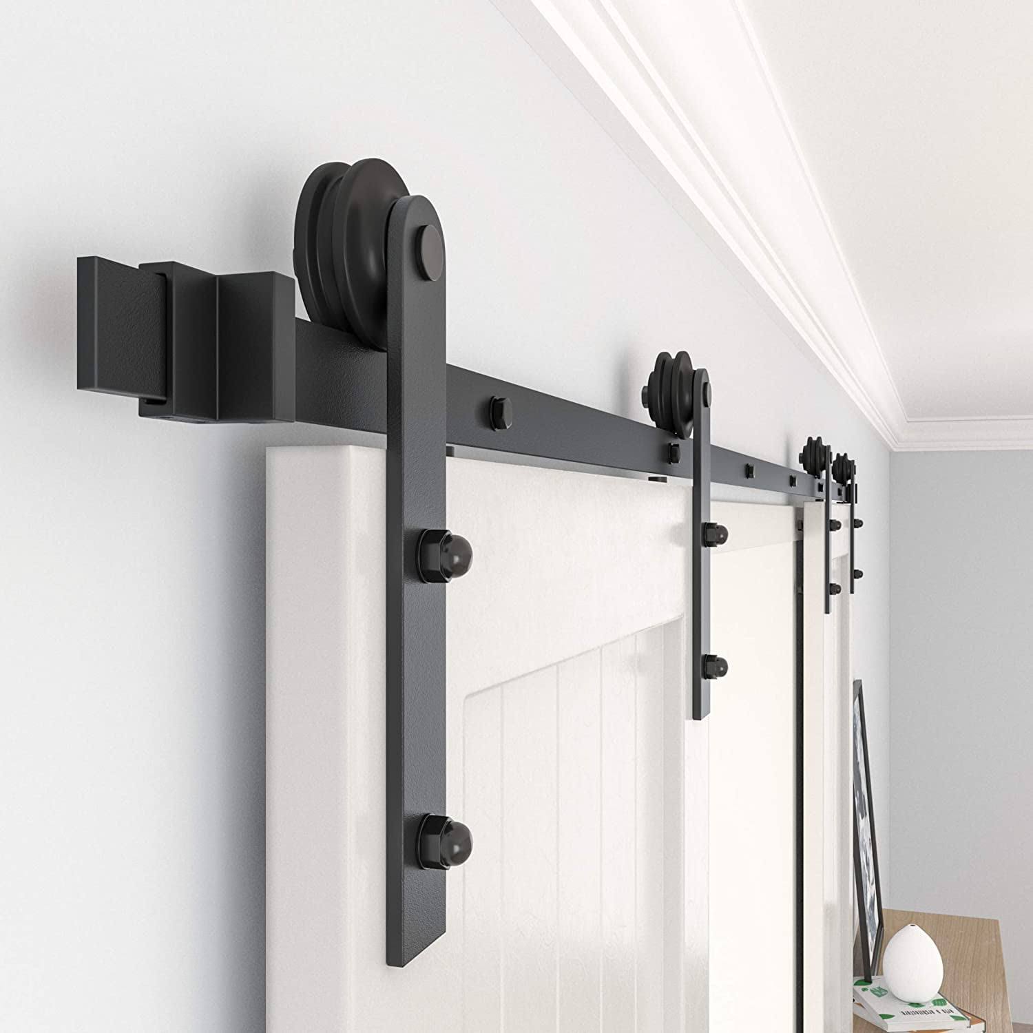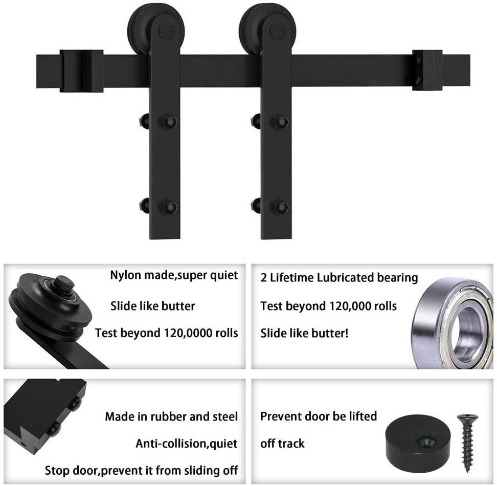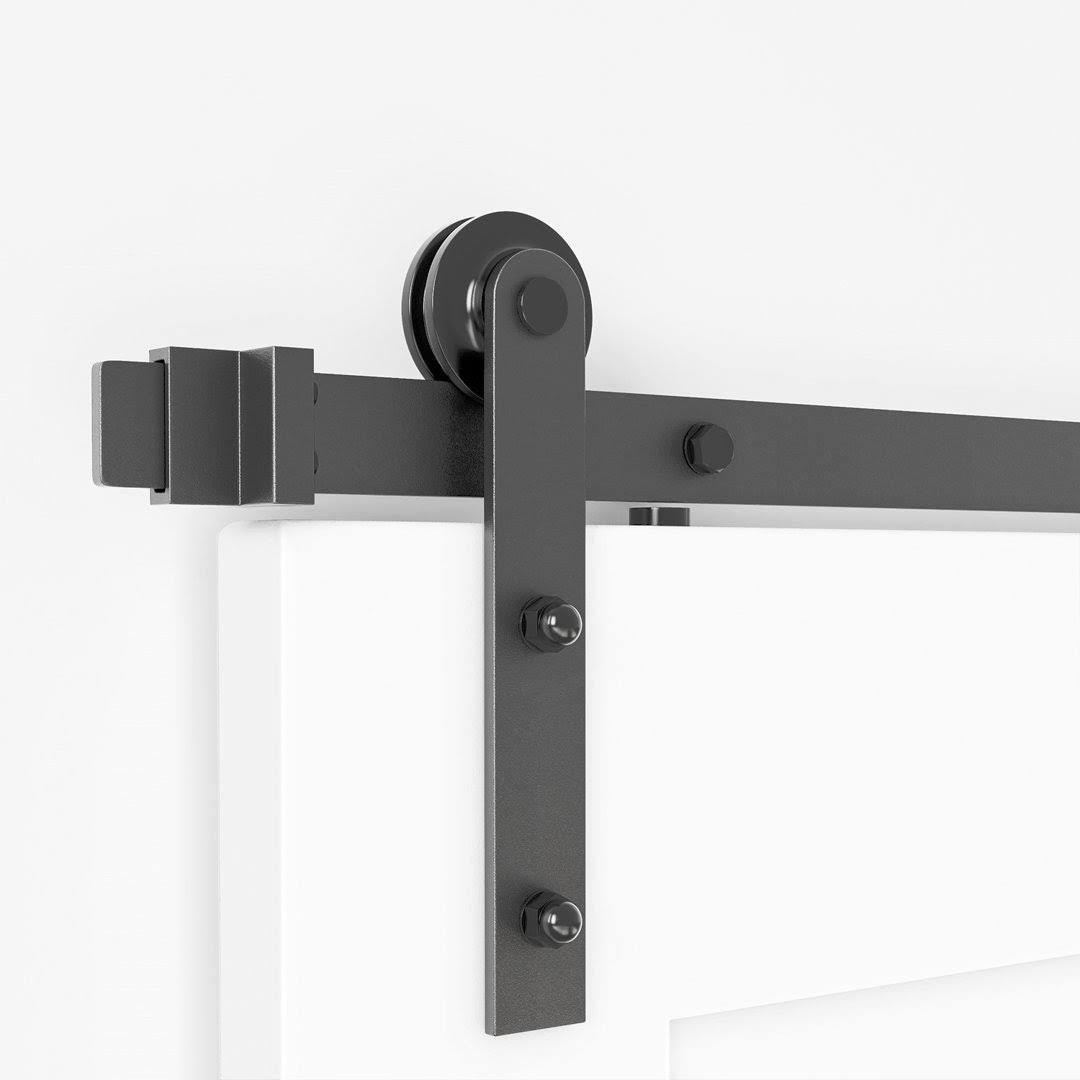 Winsoon 7.5 ft. Frosted Black Strap Sliding Barn Door Track Hardware Kit for Double Wood Doors Non-Routed Floor Guide