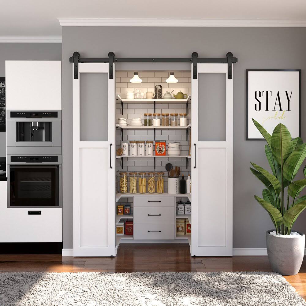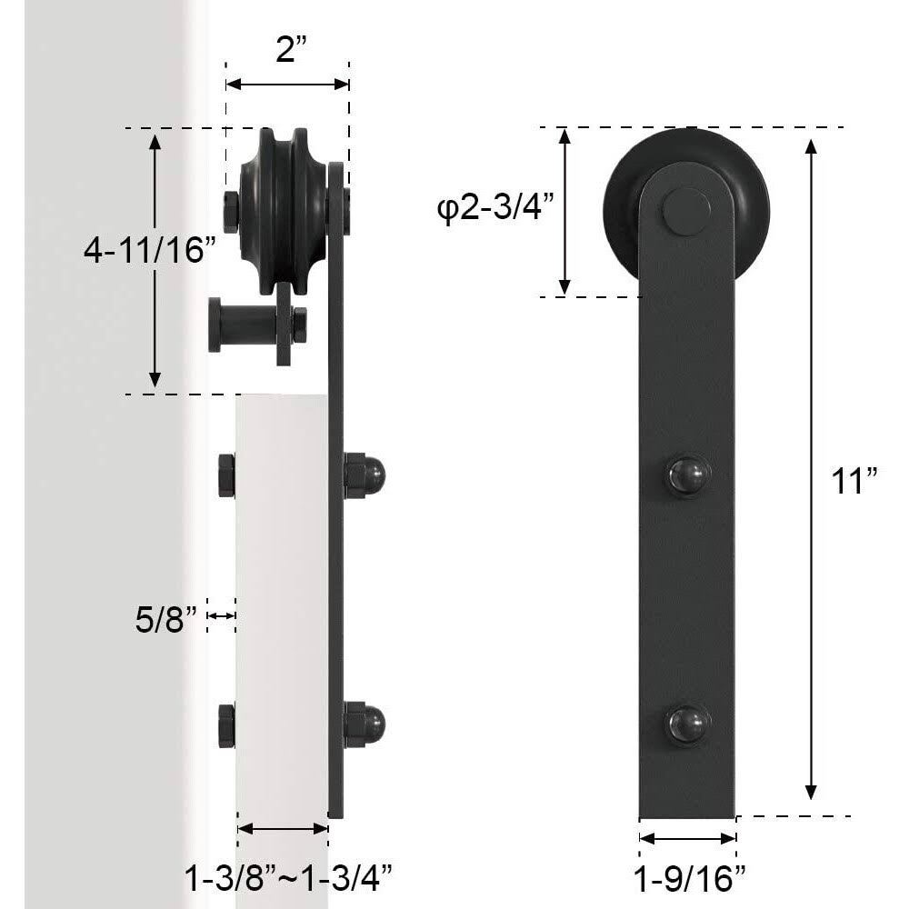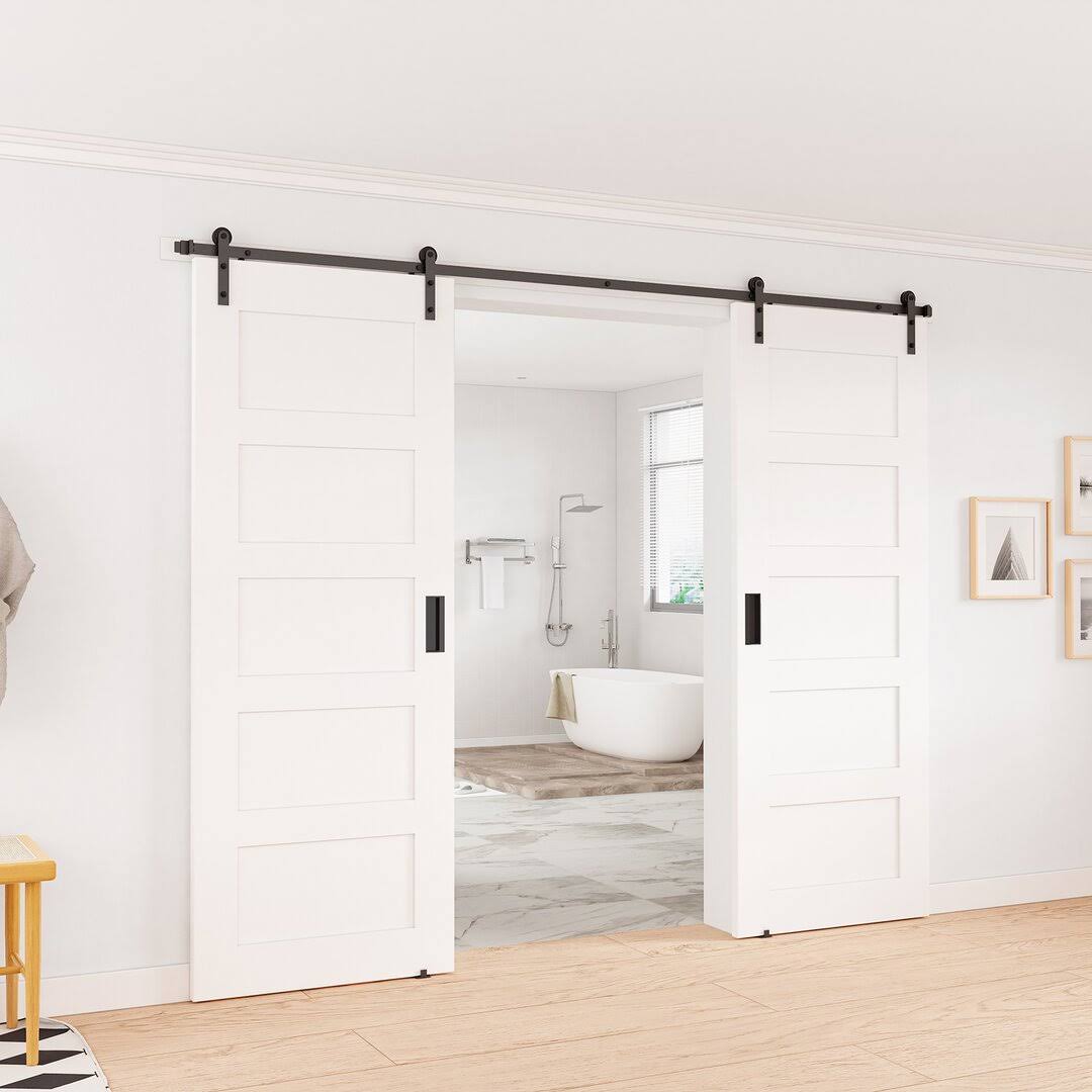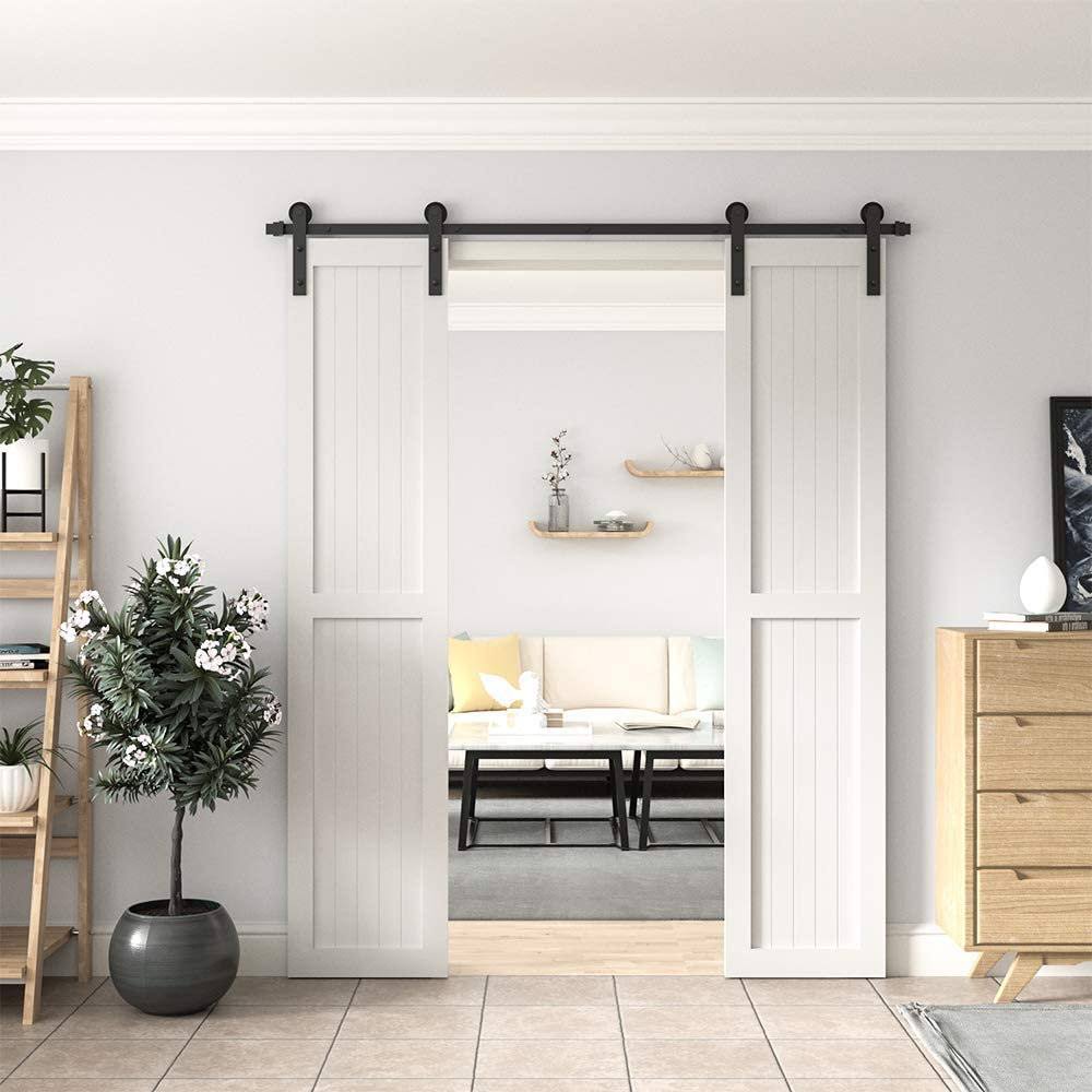 Winsoon 7.5 ft. Frosted Black Strap Sliding Barn Door Track Hardware Kit for Double Wood Doors Non-Routed Floor Guide