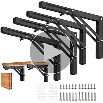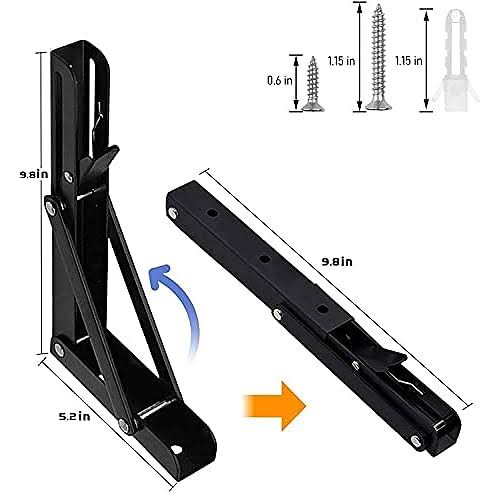 AUTOHJ Folding Shelf Brackets- 10 inch 4 Pcs Heavy Duty Metal Collapsible Triangle Shelf Bracket, DIY Wall Mounted Foldable Shelf Bracket, Space