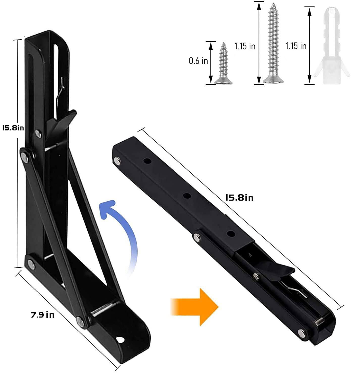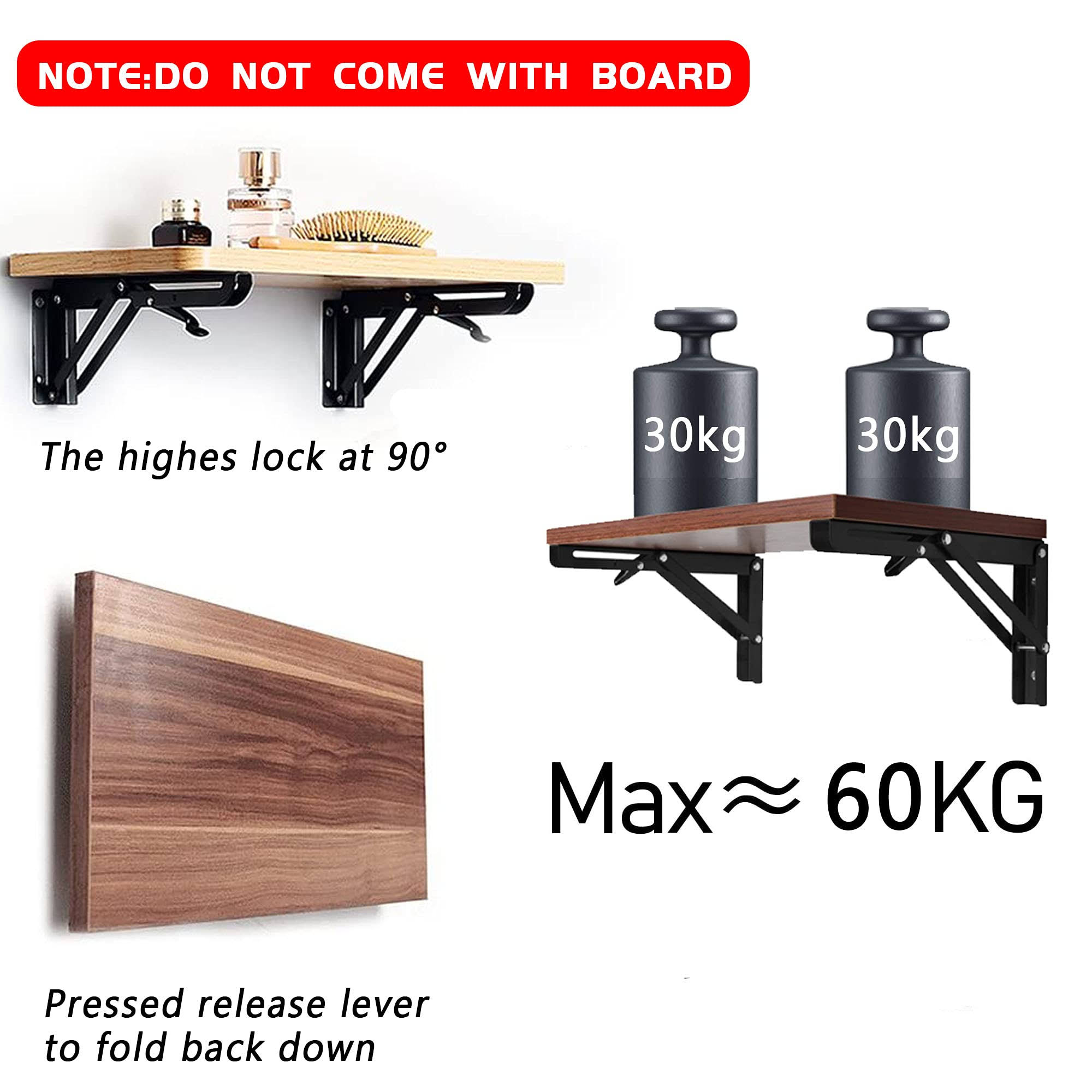 AUTOHJ Folding Shelf Brackets- Heavy Duty Stainless Steel Collapsible Triangle Shelf Bracket, DIY Wall Mounted Folding Table Hinge, Space Saving for Bench