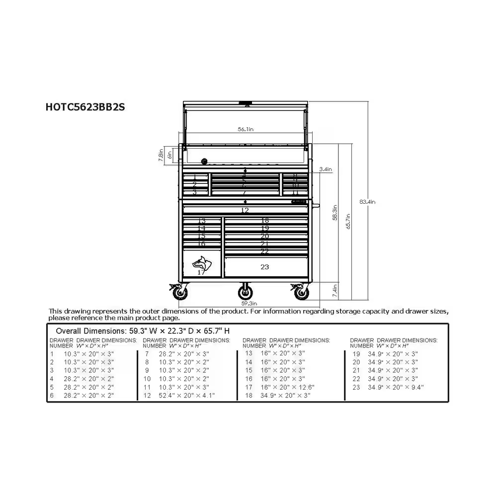 Husky 56 in. W x 22 in. D Heavy Duty 23-Drawer Combination Rolling Tool Chest and Top Tool Cabinet Set in Matte Black #HOTC5623BB2S