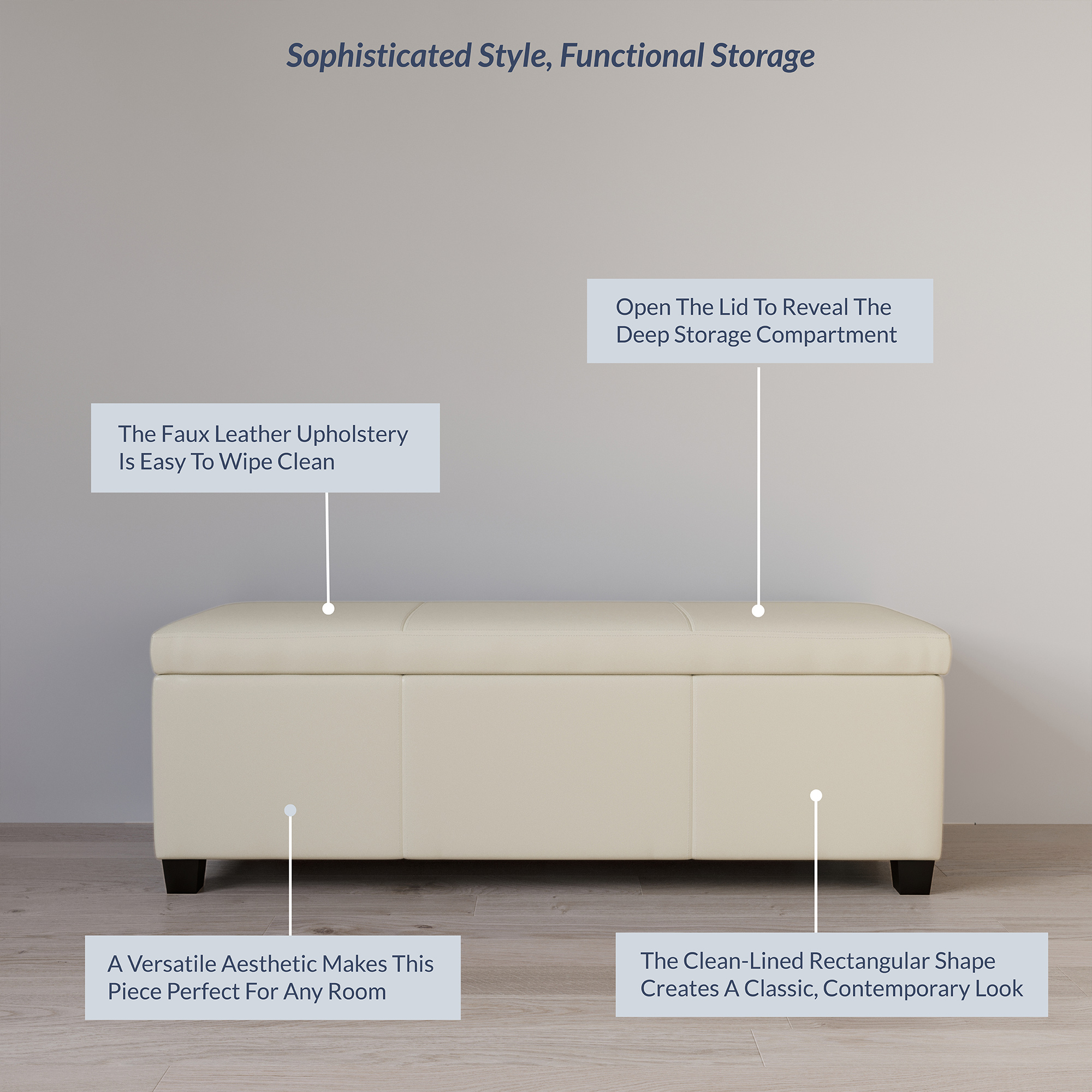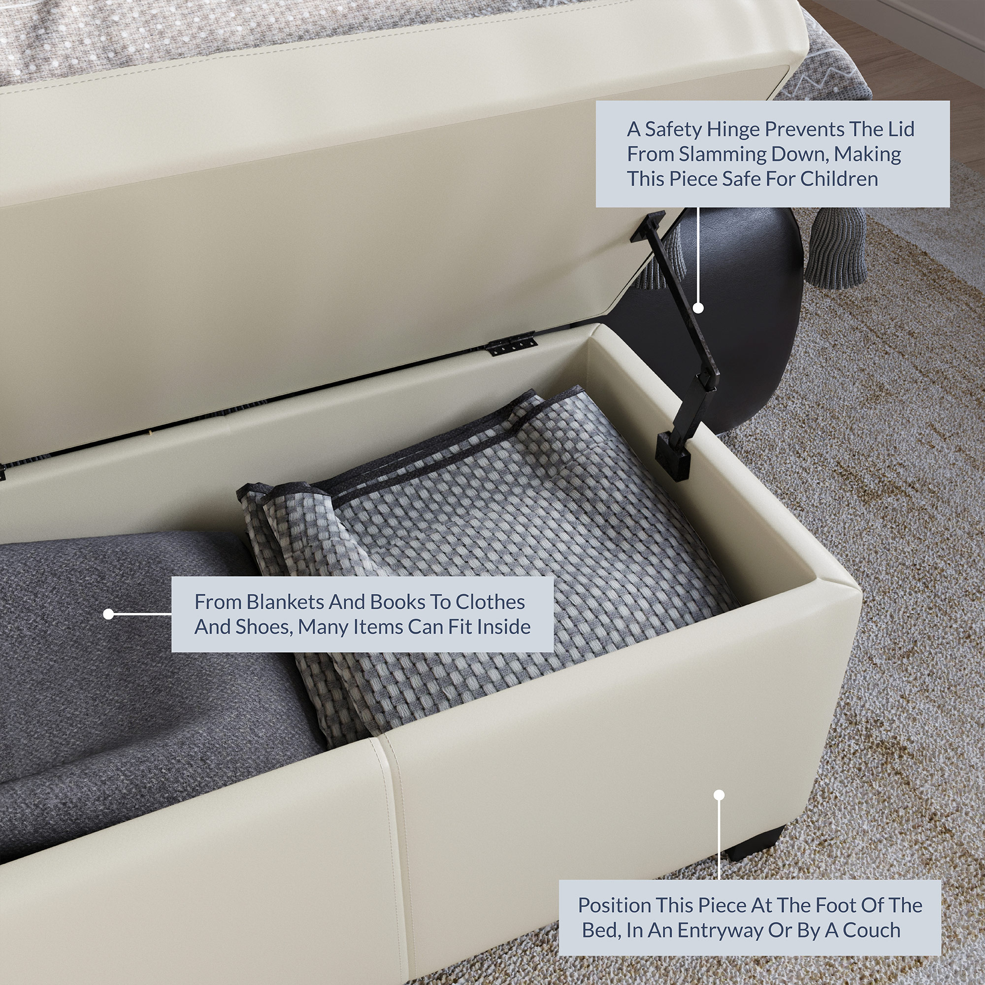 BELLEZE Storage Ottoman Bench Footstool - Amherst (Cream)