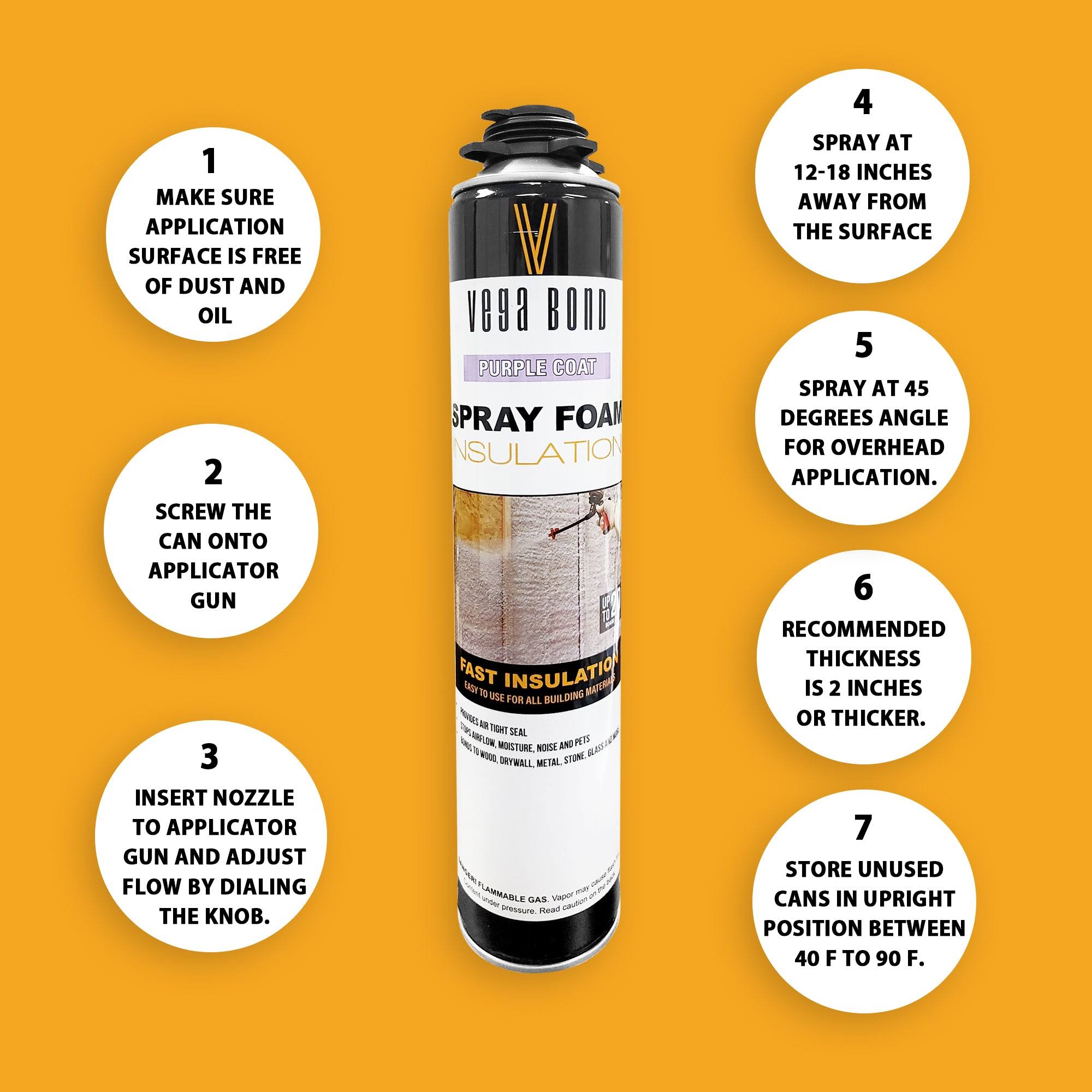 Vega Bond SF001 1-Pack with Set, Premium Single Component, Self Expanding, Purplecoat Closed Cell Insulation Spray Foam, Acoustic Spray (20 Board