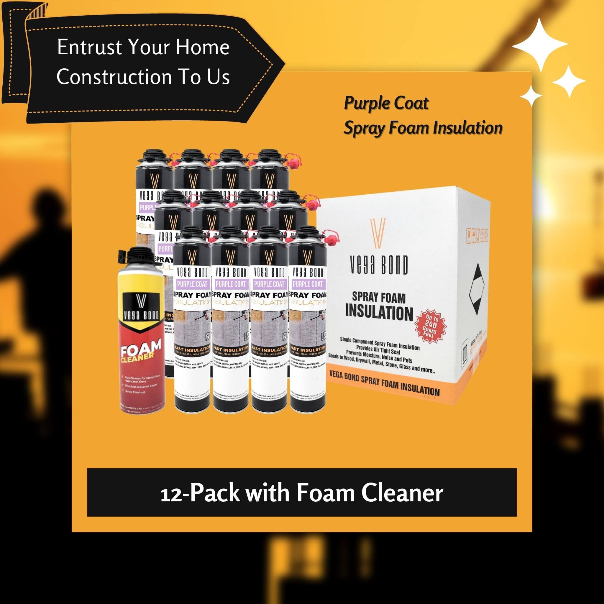 Vega Bond Purplecoat 12 Pack Insulation Spray Foam 29 oz (240 Board Feet) with App Gun and Cleaner 12 Pack, Purple
