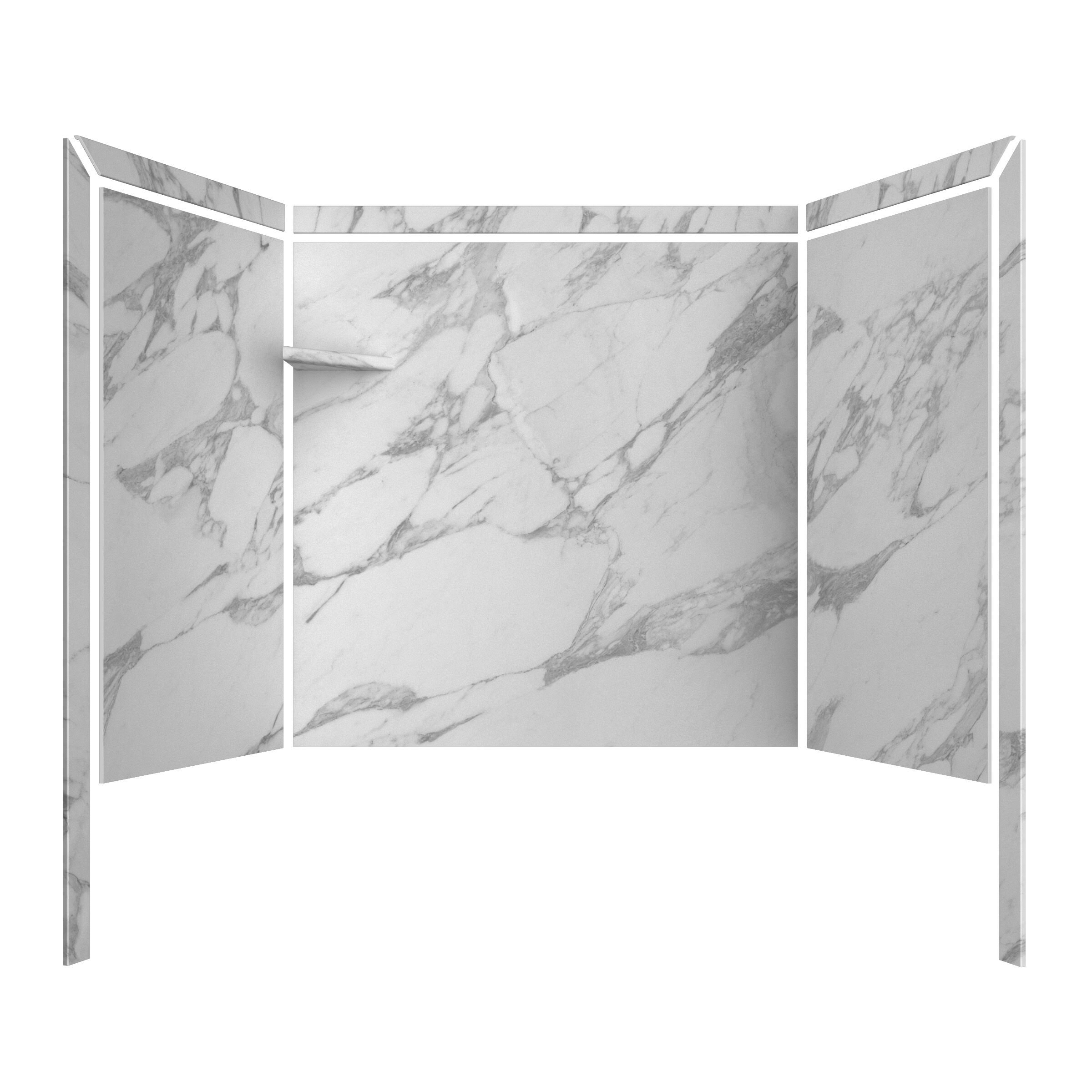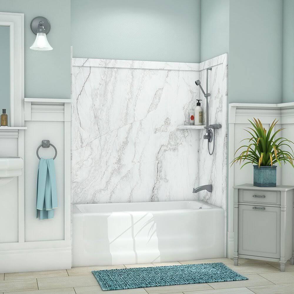 FlexStone Elite 32 in. x 60 in. x 60 in. 9-Piece Easy Up Adhesive Tub Surround in Mocha Travertine