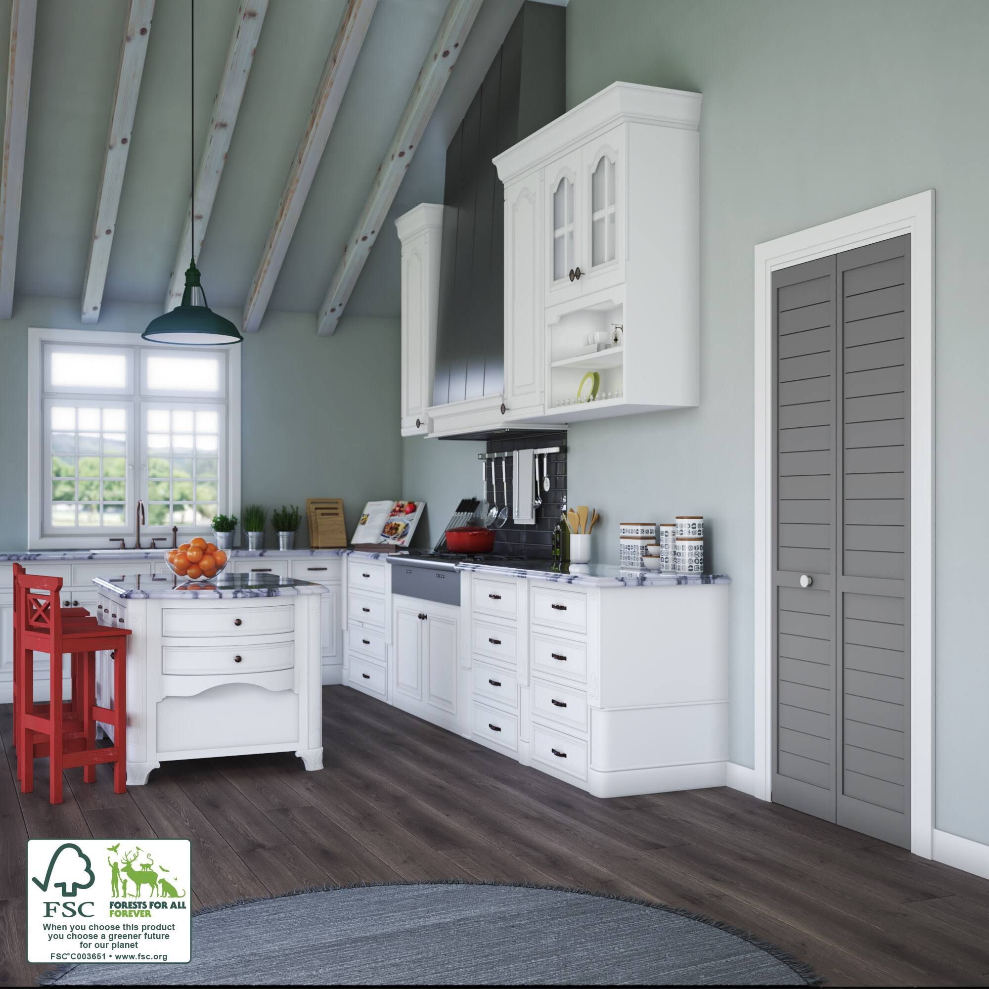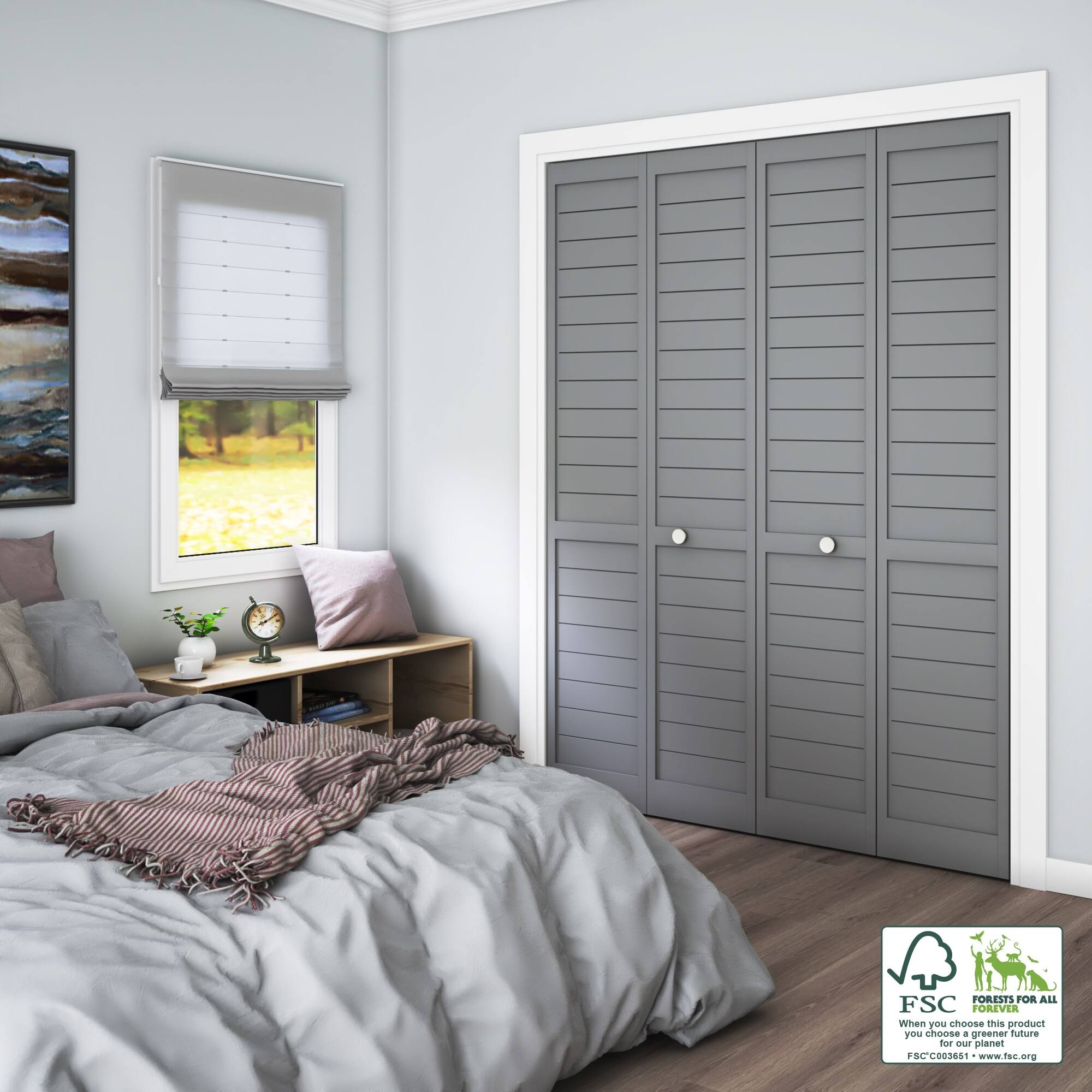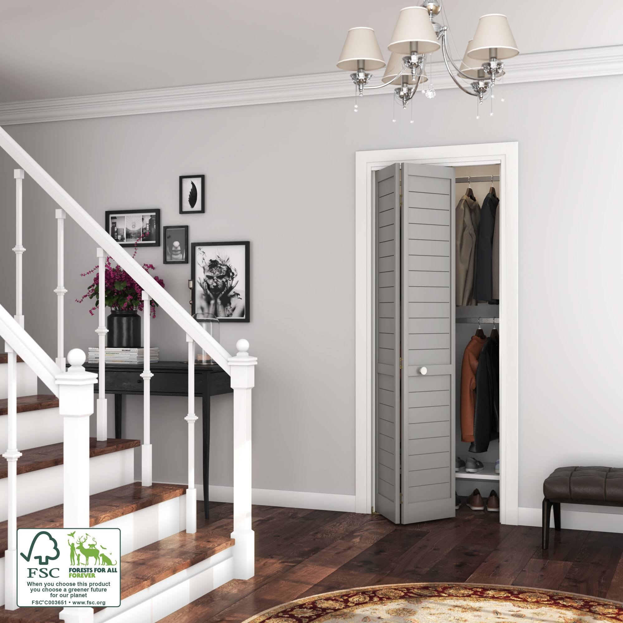 EightDoors 80 inch x 36 inch x 1 inch Flat Louver Grey Prefinished Pine Wood Interior Bifold Door with Hardware Included