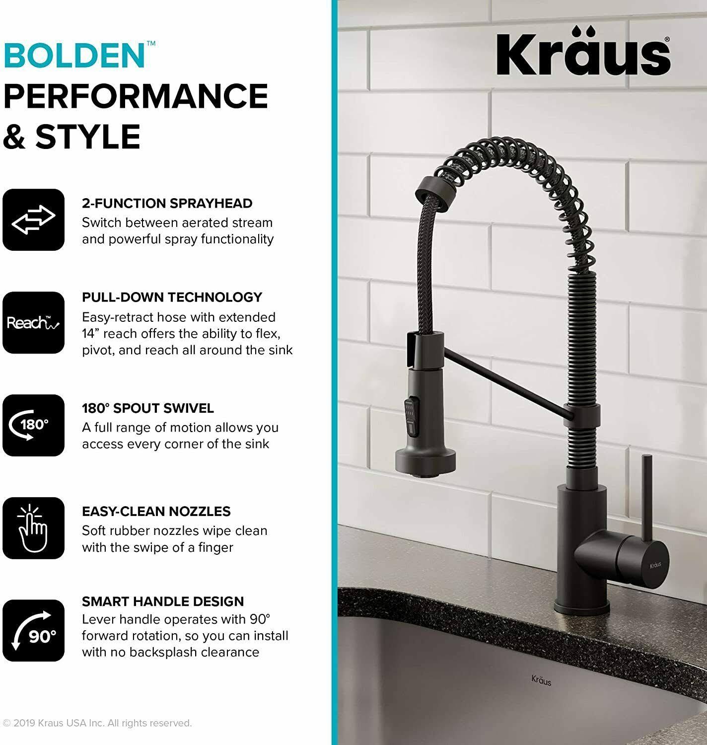 Kraus KPF-1610MB Bolden Kitchen Faucet & Pull-Down Sprayhead, 18", Matte Black