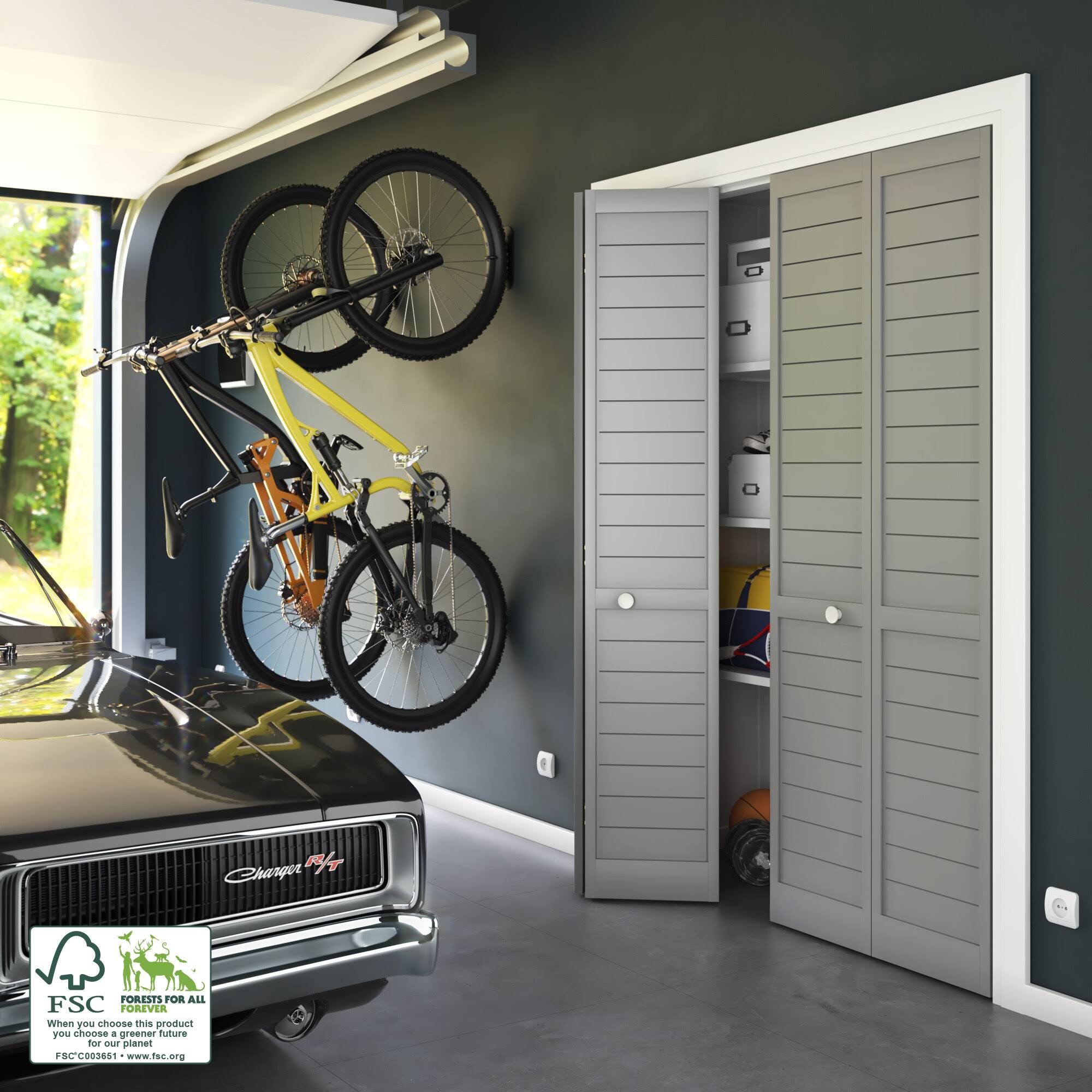 EightDoors 80 inch x 30 inch x 1 inch Flat Louver Grey Prefinished Pine Wood Interior Bifold Door with Hardware Included