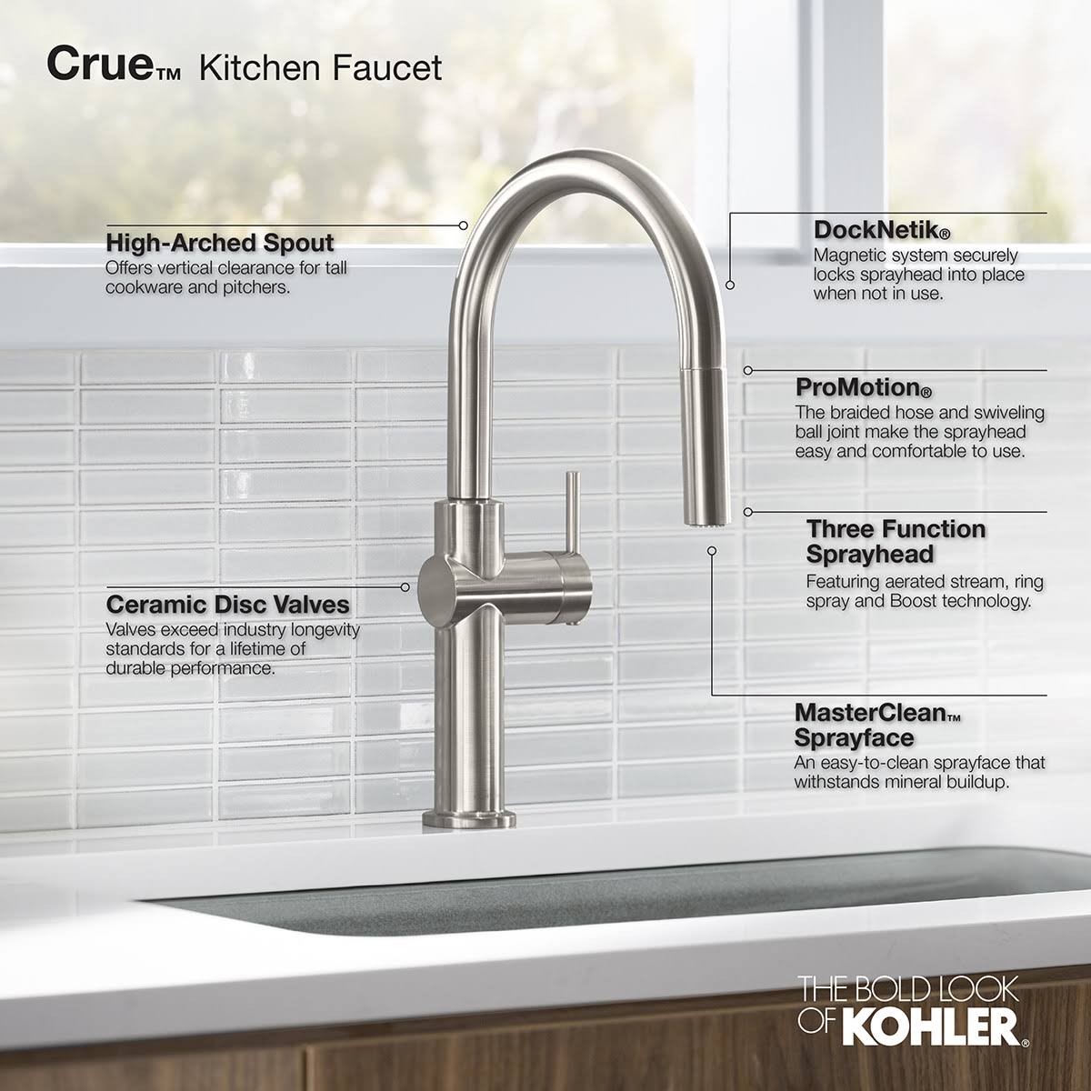 Kohler K-22972 Crue Pull-Down Single-Handle Kitchen Faucet- Polished Chrome