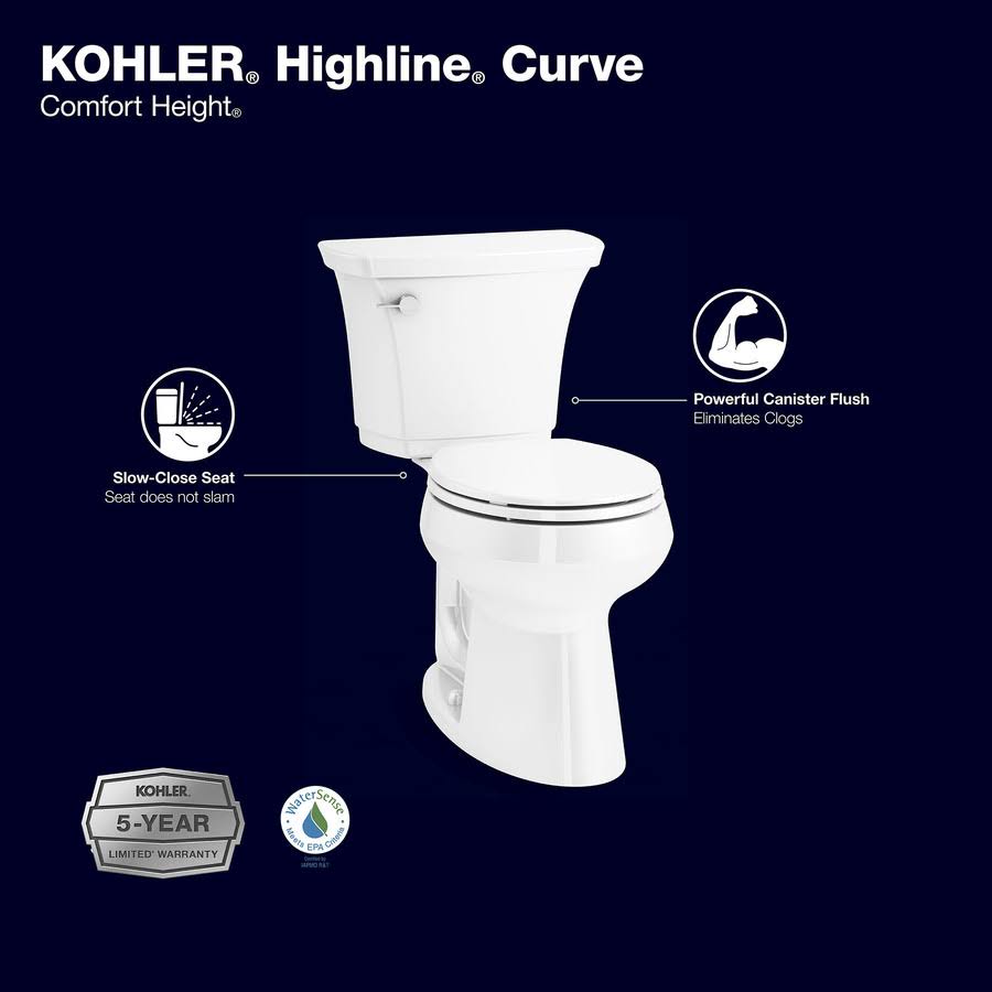 Kohler K-30369-0 12" Rough-In Size Highline Curve White Round Comfort Height 2-Piece Toilet- Each