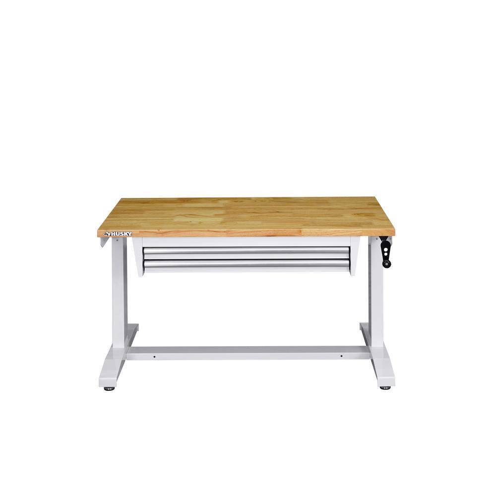 Husky 46 in. Adjustable Height Work Table with 2-Drawers in White