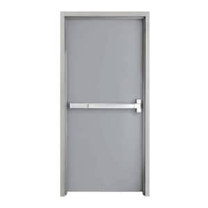 36 in. x 80 in. Gray Left-Hand Flush Steel Commercial Door with Knock