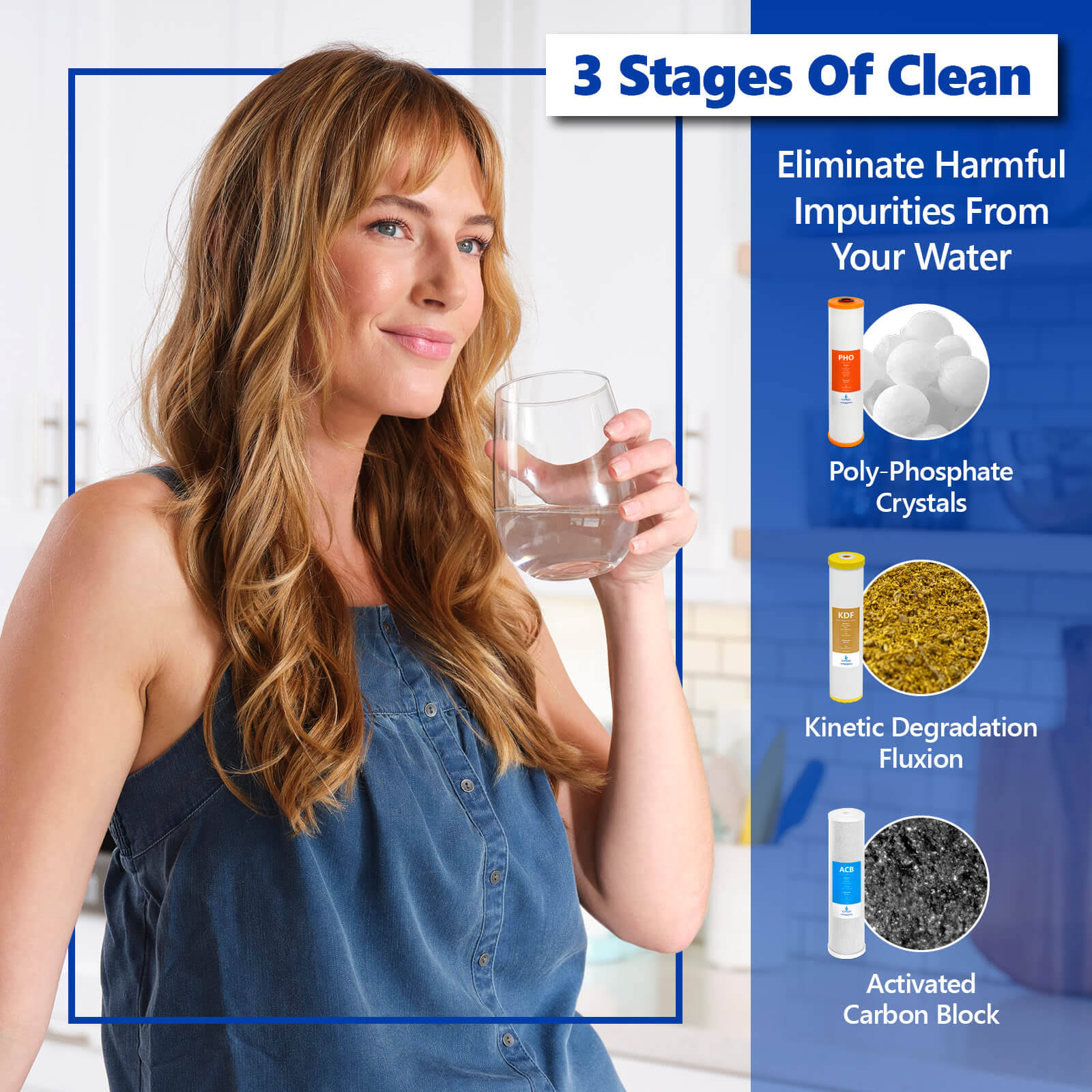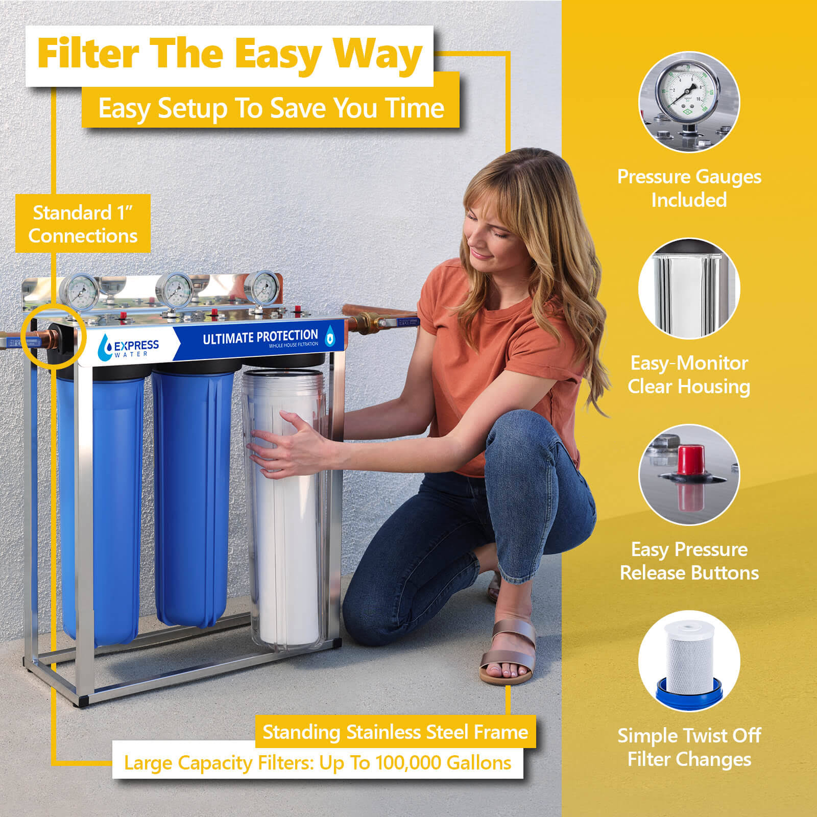 Express Water Heavy Metal Anti-Scale 3 Stage Whole House Water Filtration System- Ultimate Protection Polyphosphate, KDF, Carbon, Blue