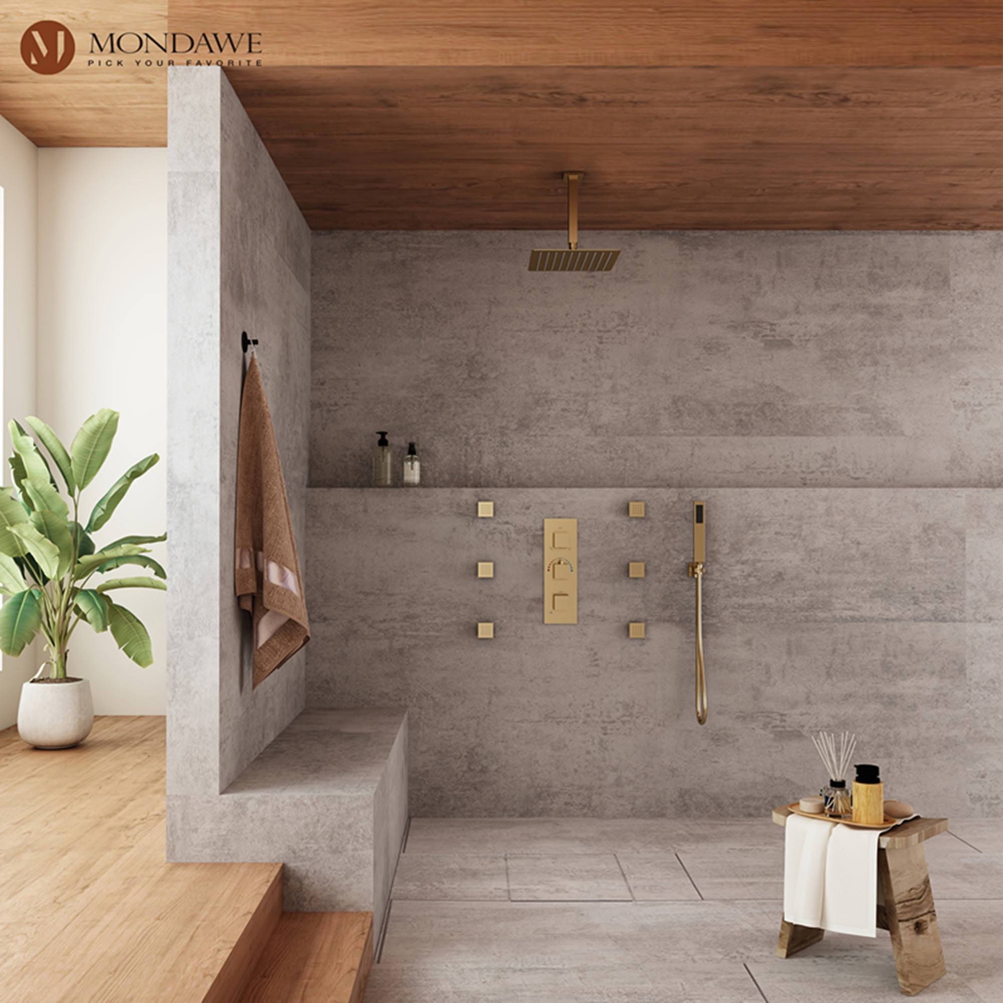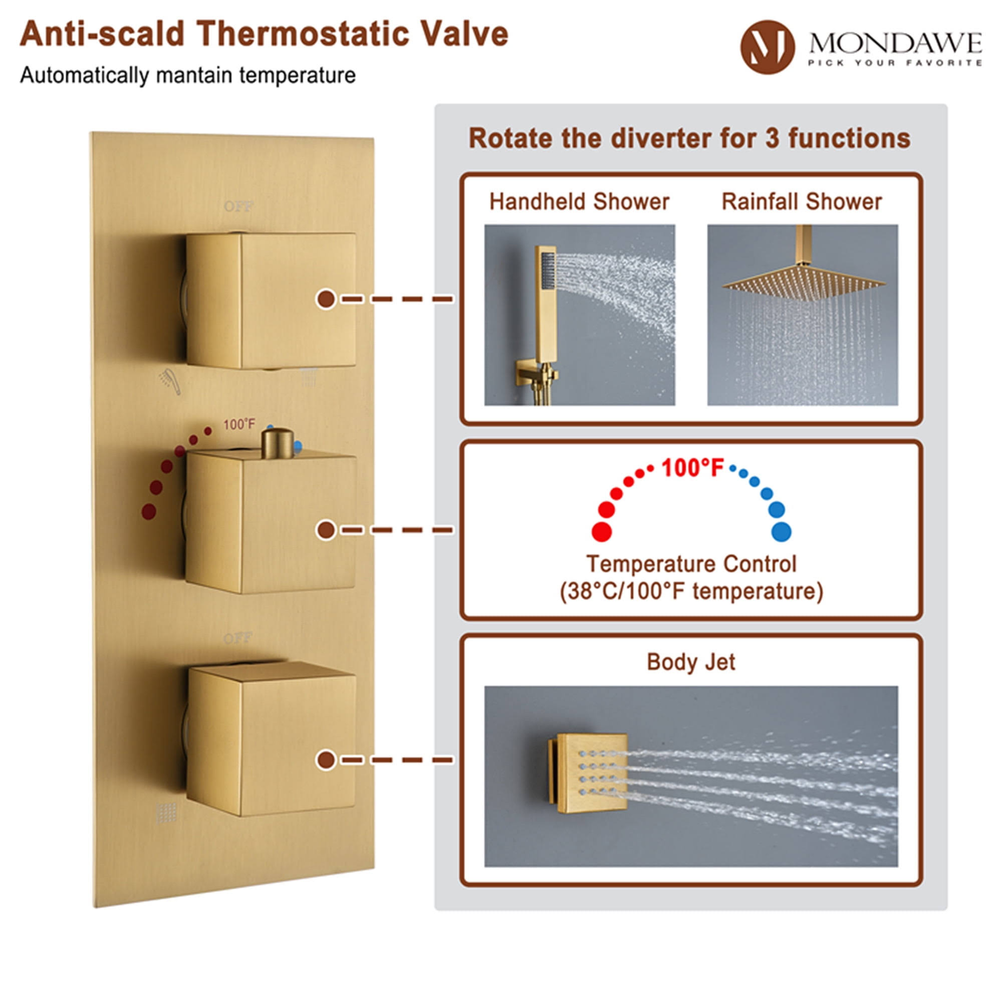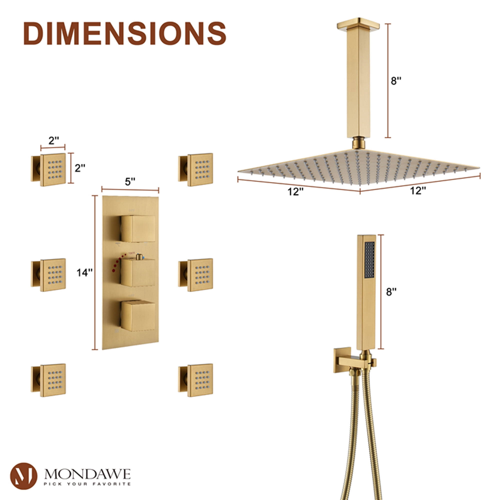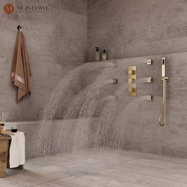 Mondawe MD6865-BG Thermostatic Shower System with Rough-In Valve Finish: Brushed Gold