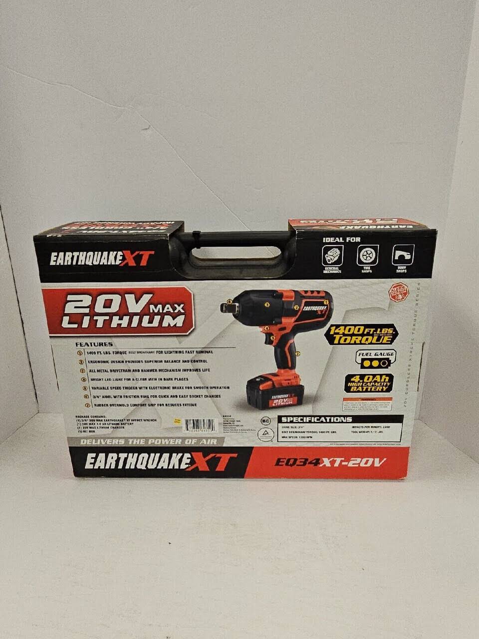 Earthquake XT 20V Cordless 3/4 in. Xtreme Torque Impact Wrench Kit with 4.0 Ah Battery, Fast Charger and Case