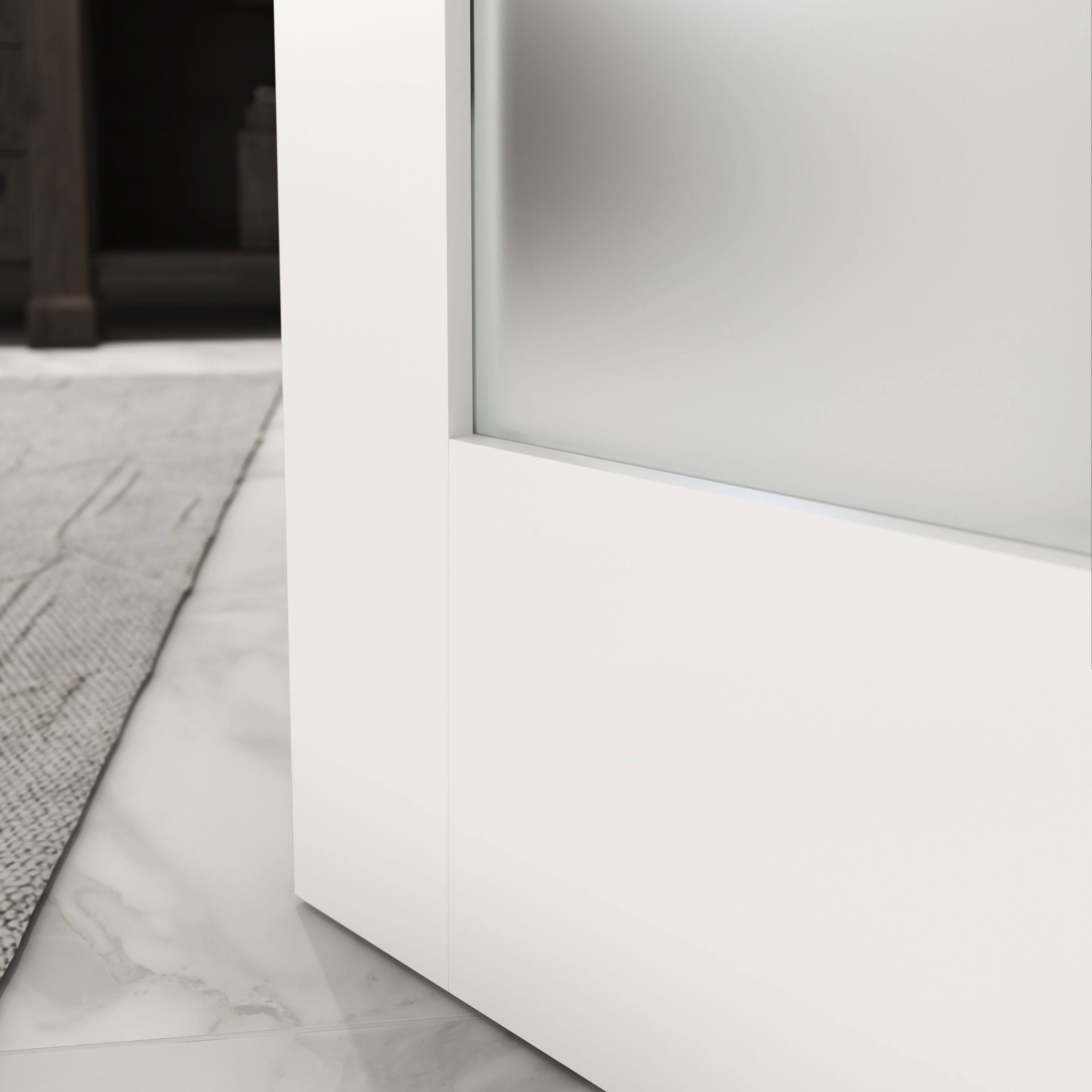 EightDoors 24-in x 80-in White 1-Panel Square Frosted Glass Solid Core Primed Pine Wood Slab Door | 50388014802435FRSH
