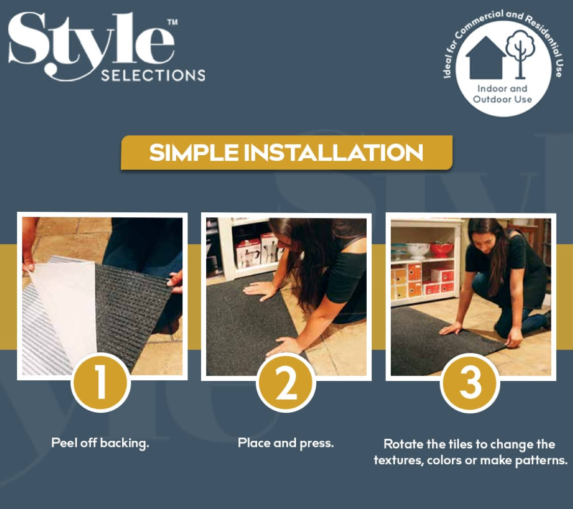 Style Selections New Age Plank Ice Pattern Peel-and-Stick Carpet Tile- Black- 1 Each