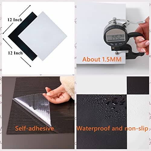 Alow Vinyl Flooring Peel and Stick Floor Tile/Coverings 12inx12in Easy to Install and Waterproof for Bathroom and Kitchen (10 Pcs, Black and White)