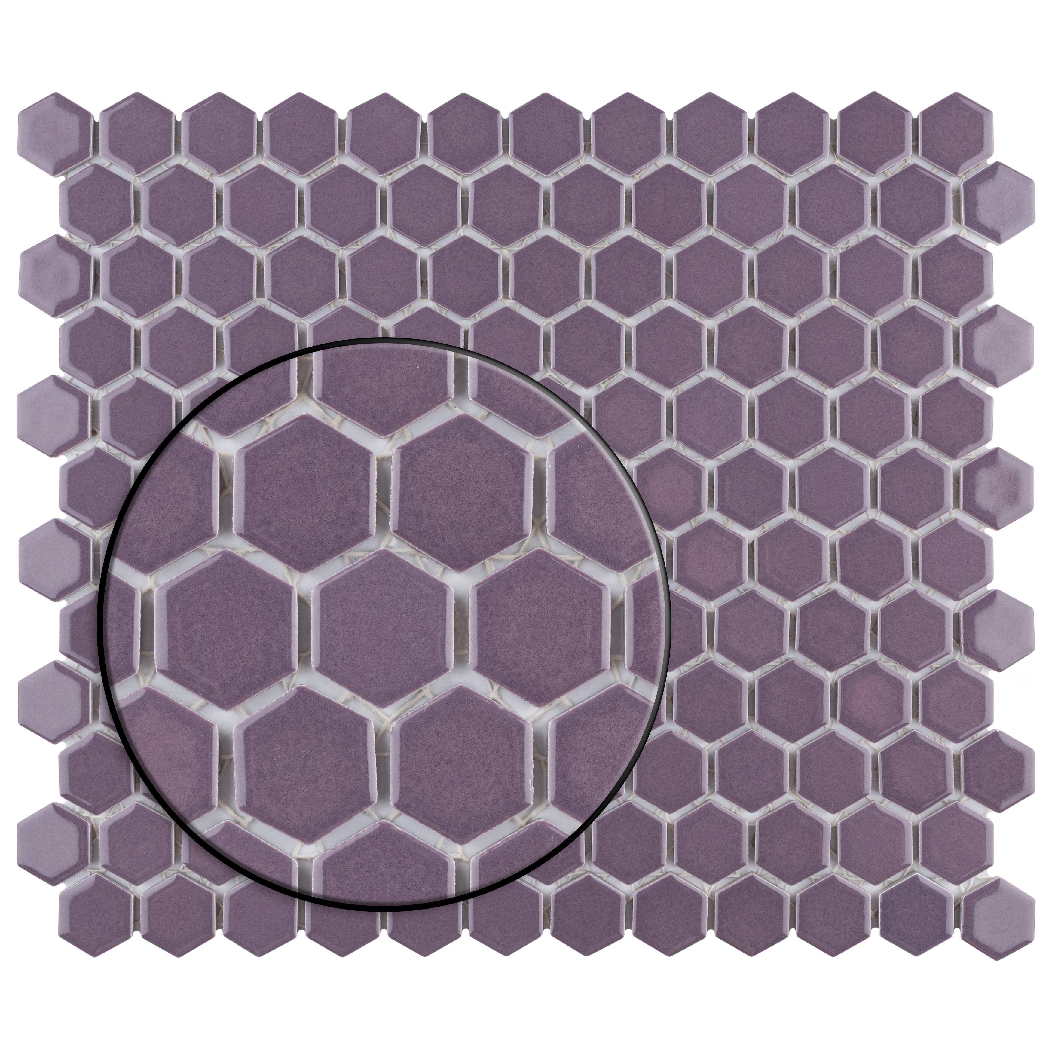 Metro Hex .90" x .90" Porcelain Honeycomb Mosaic Wall & Floor Tile Merola Tile Purple