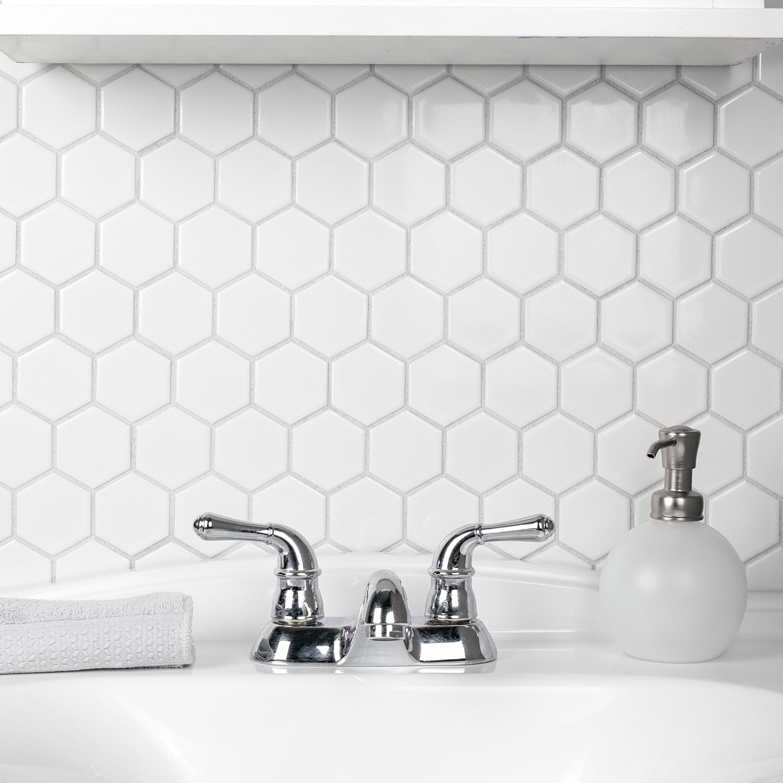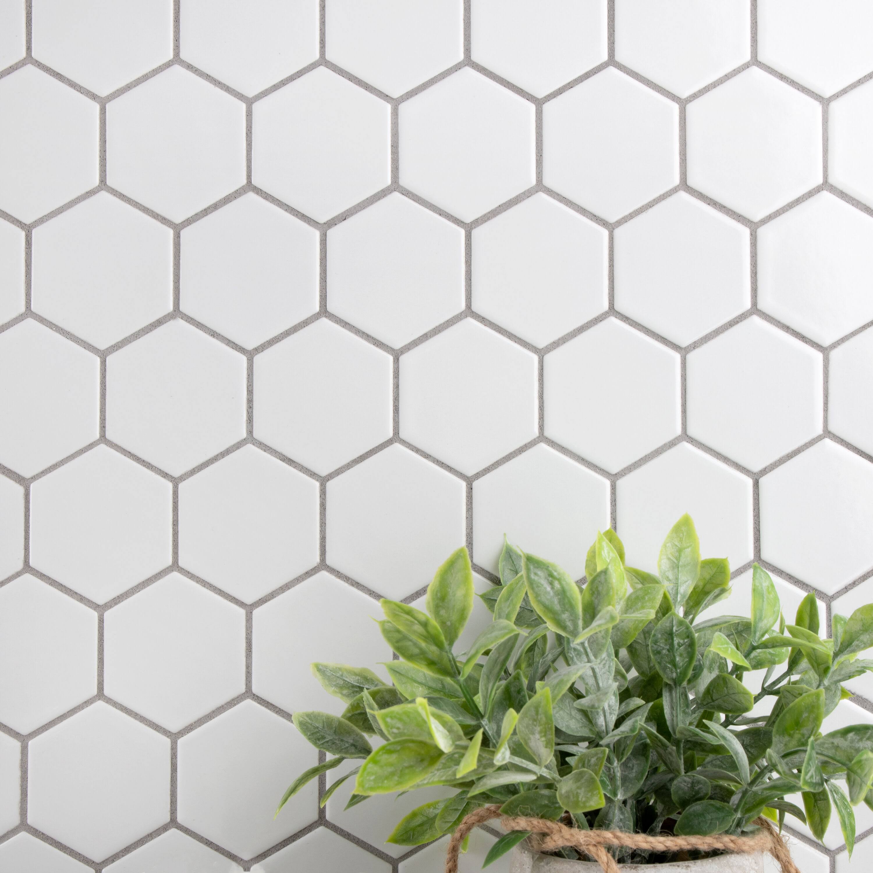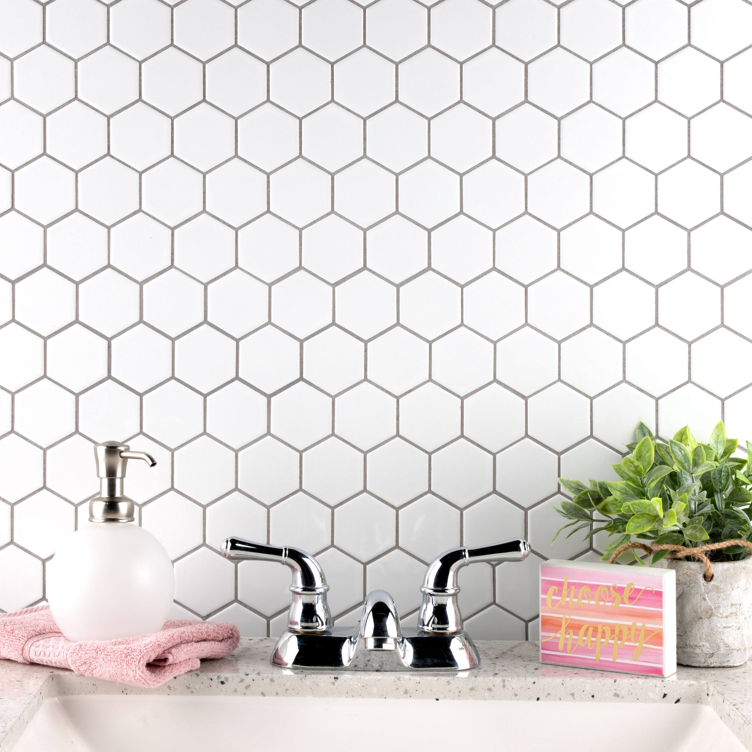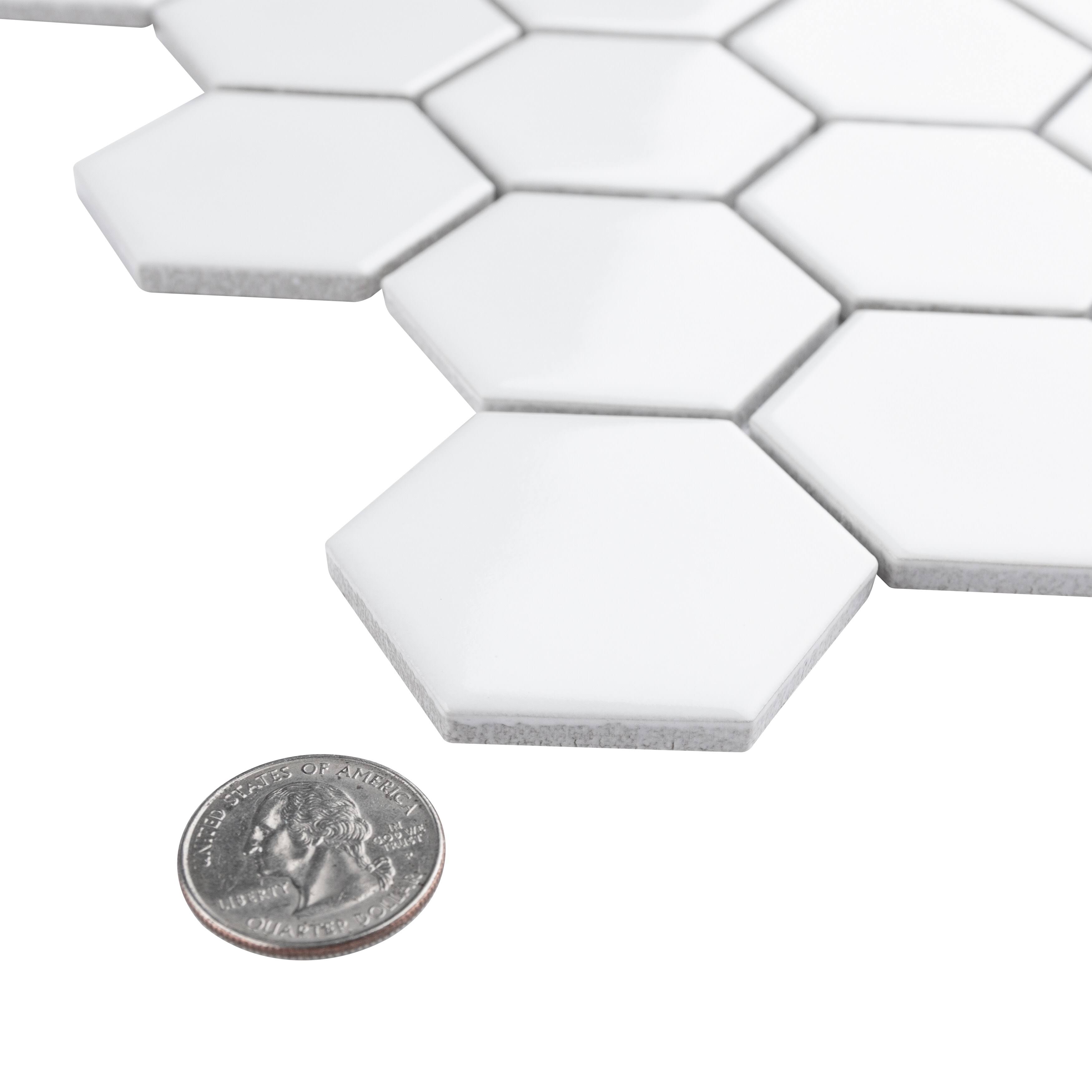 SomerTile FXLM2HGW Retro Hex Porcelain Floor and Wall Tile, 10.5" x 11", Glossy White