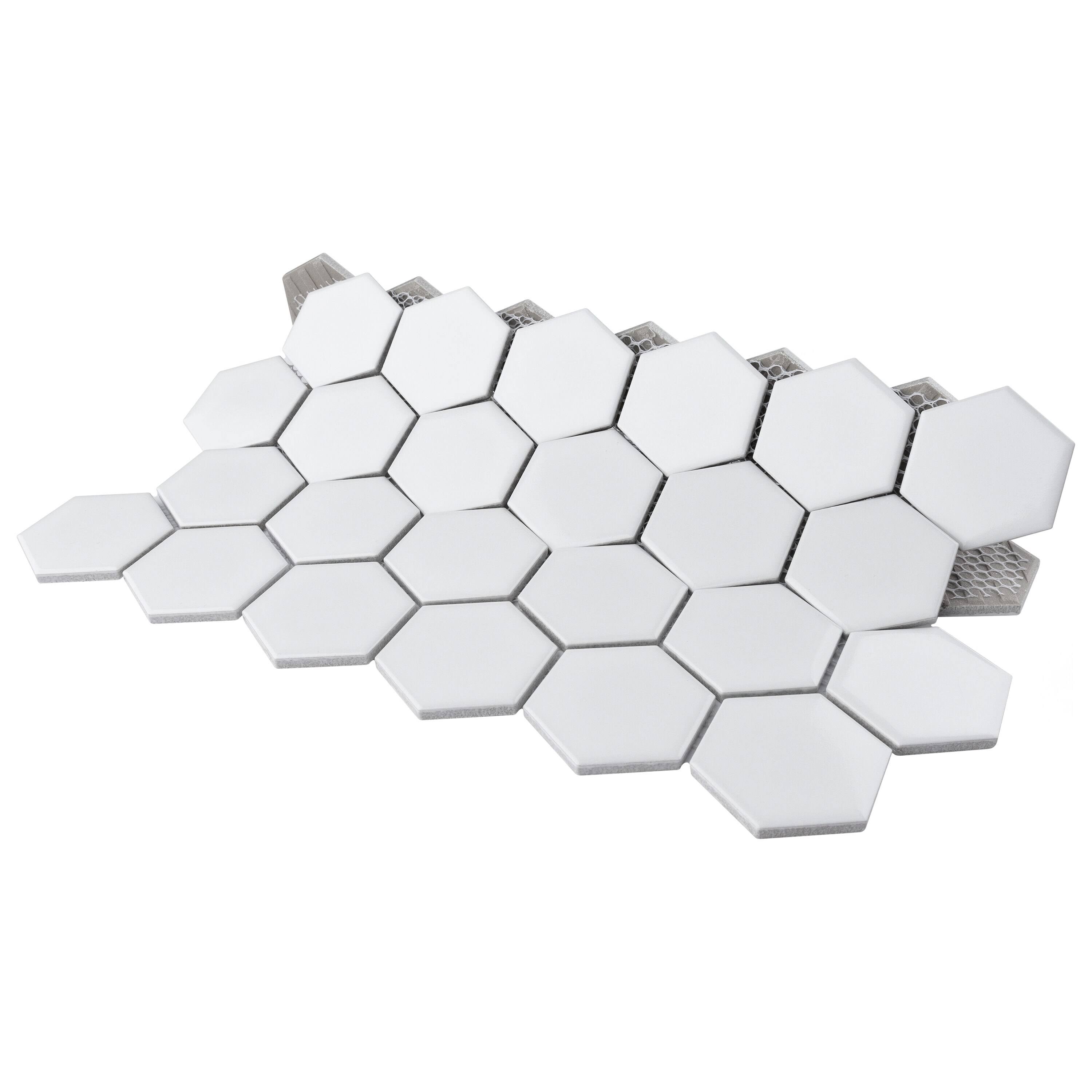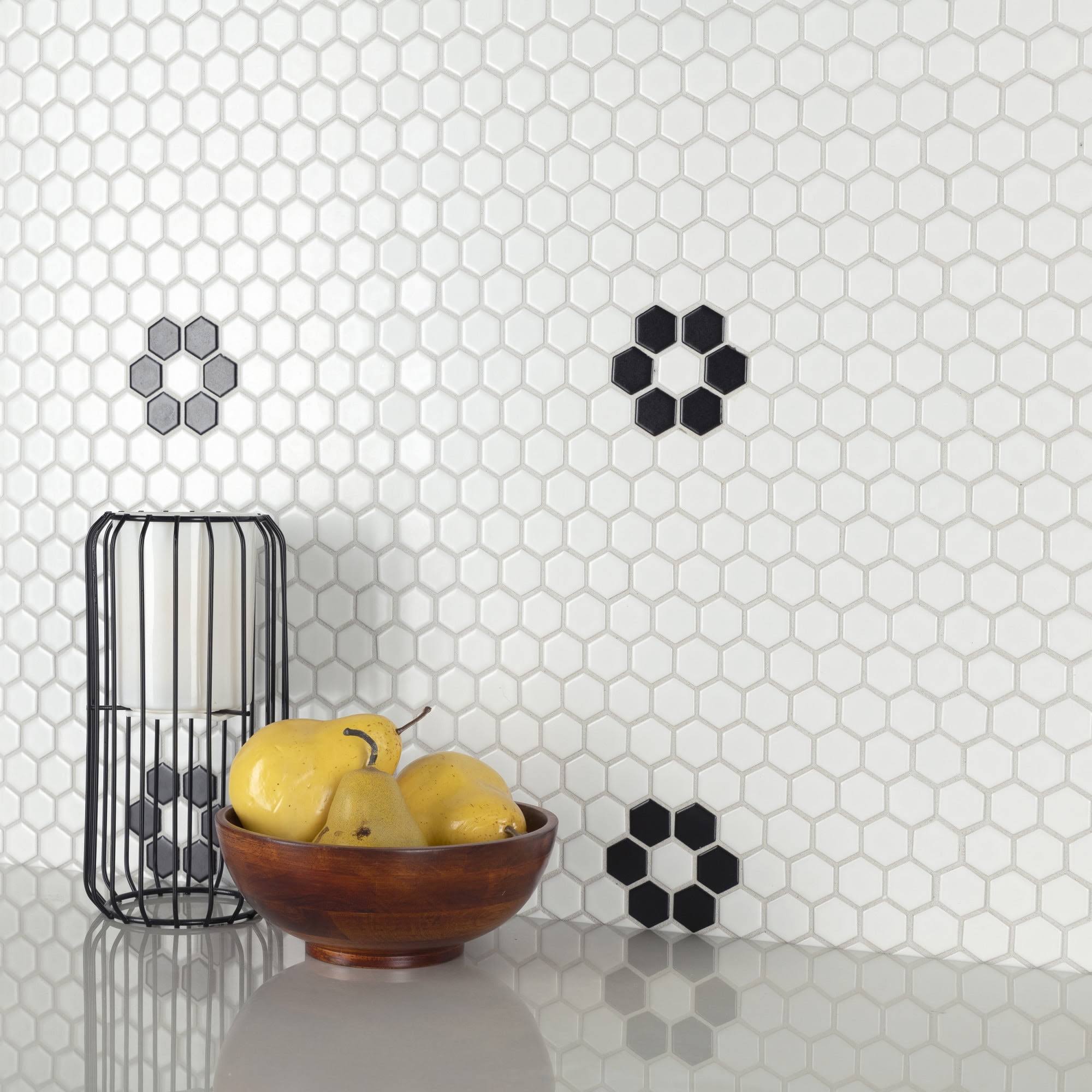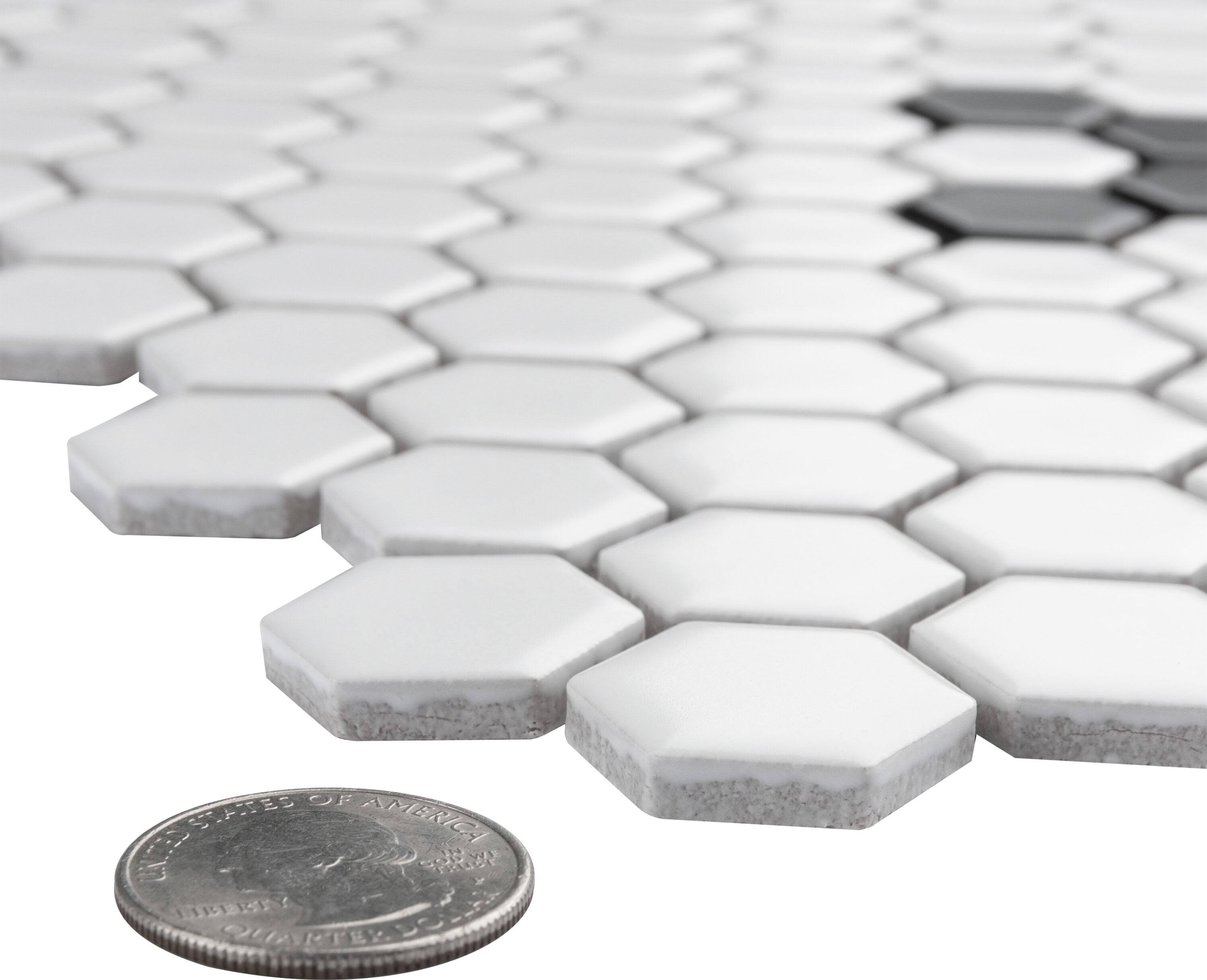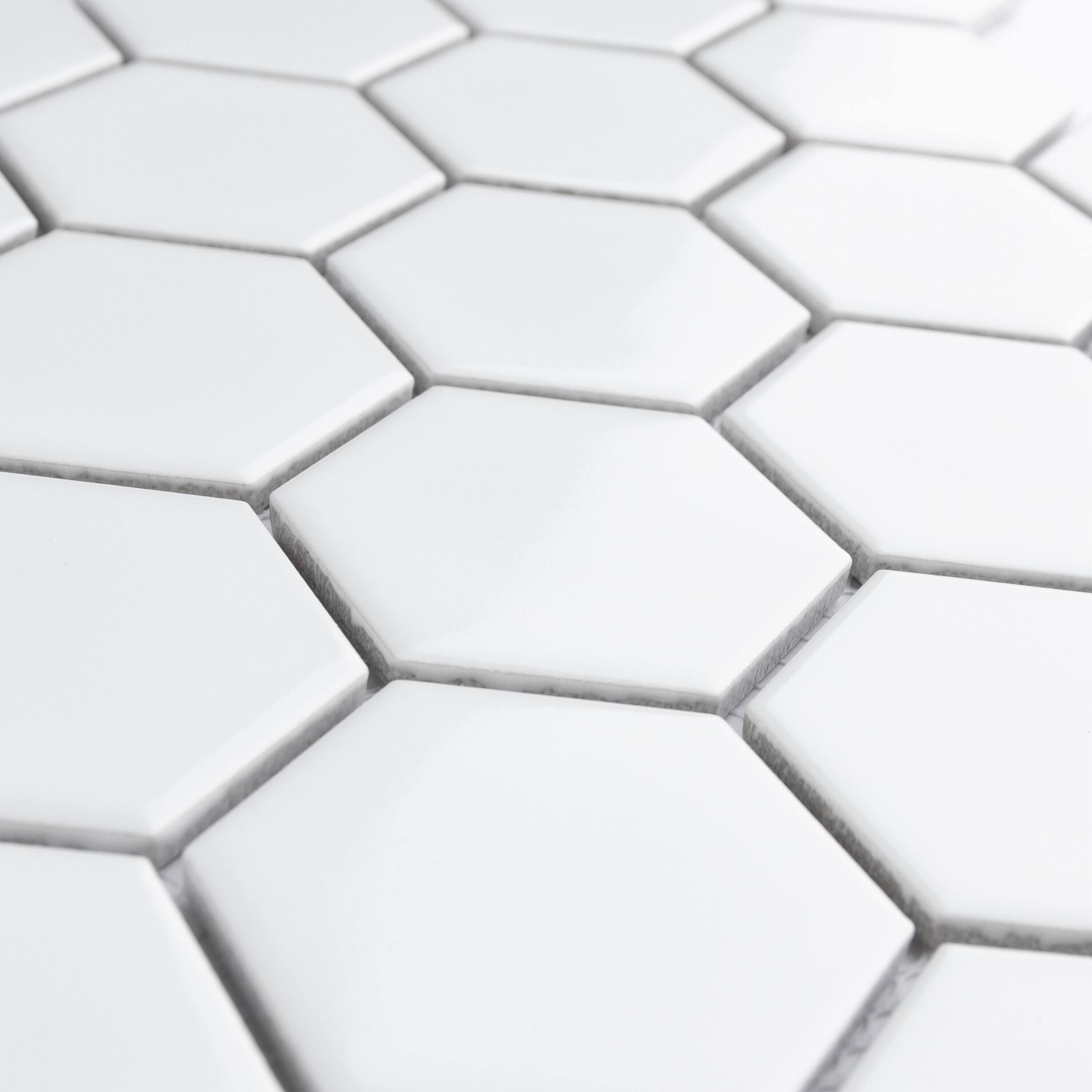 SomerTile FXLM2HGW Retro Hex Porcelain Floor and Wall Tile, 10.5" x 11", Glossy White