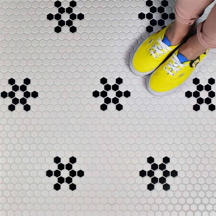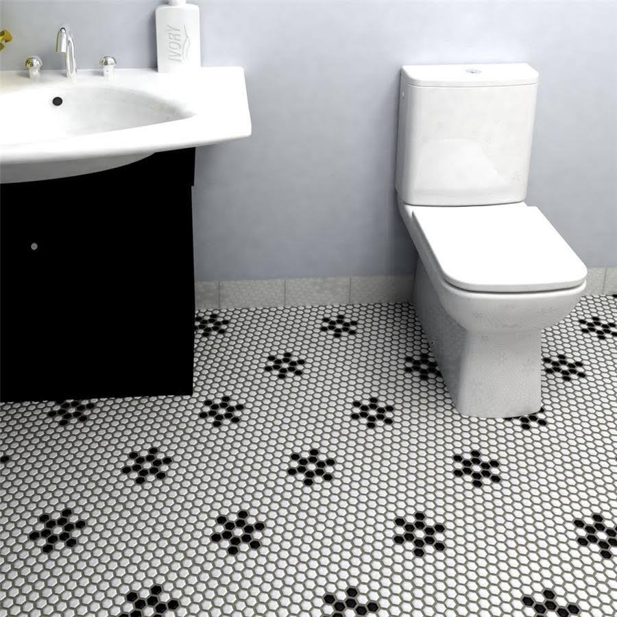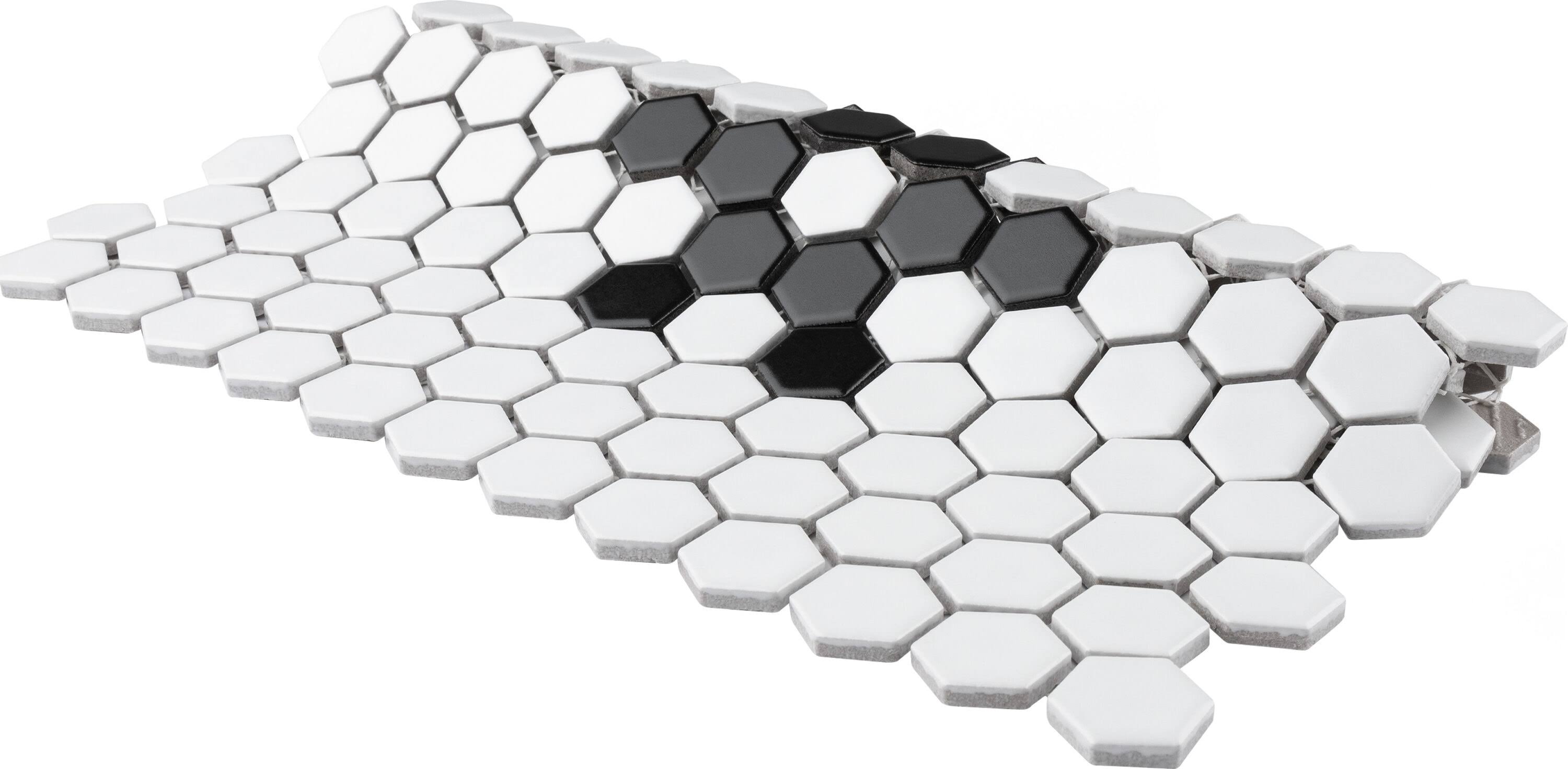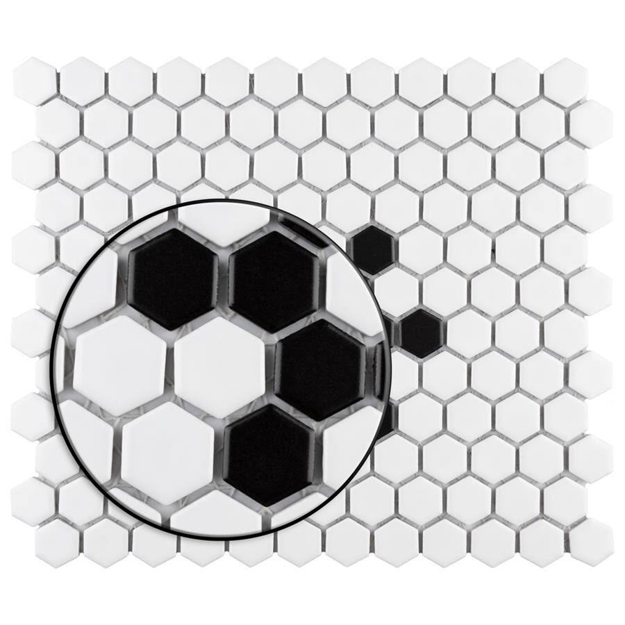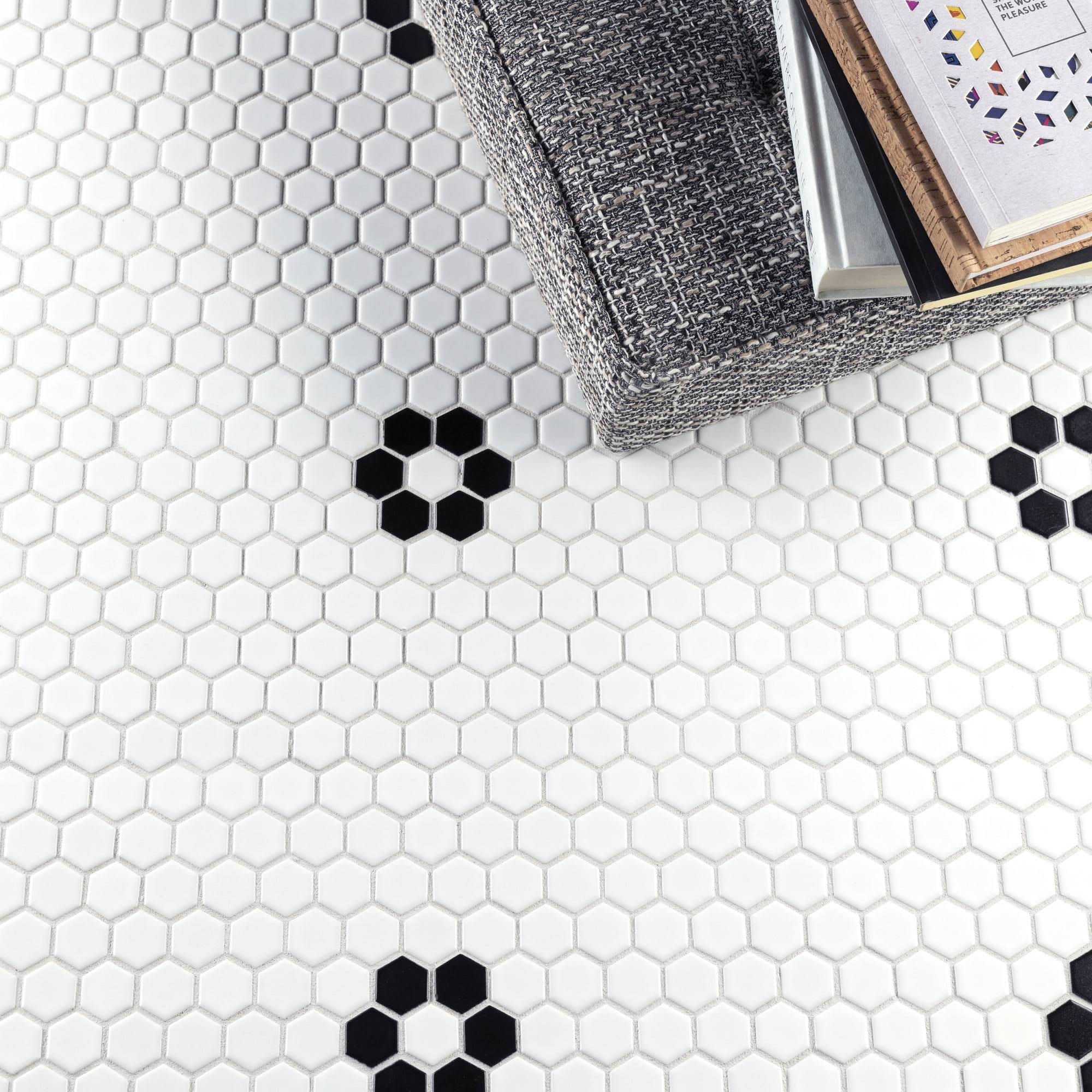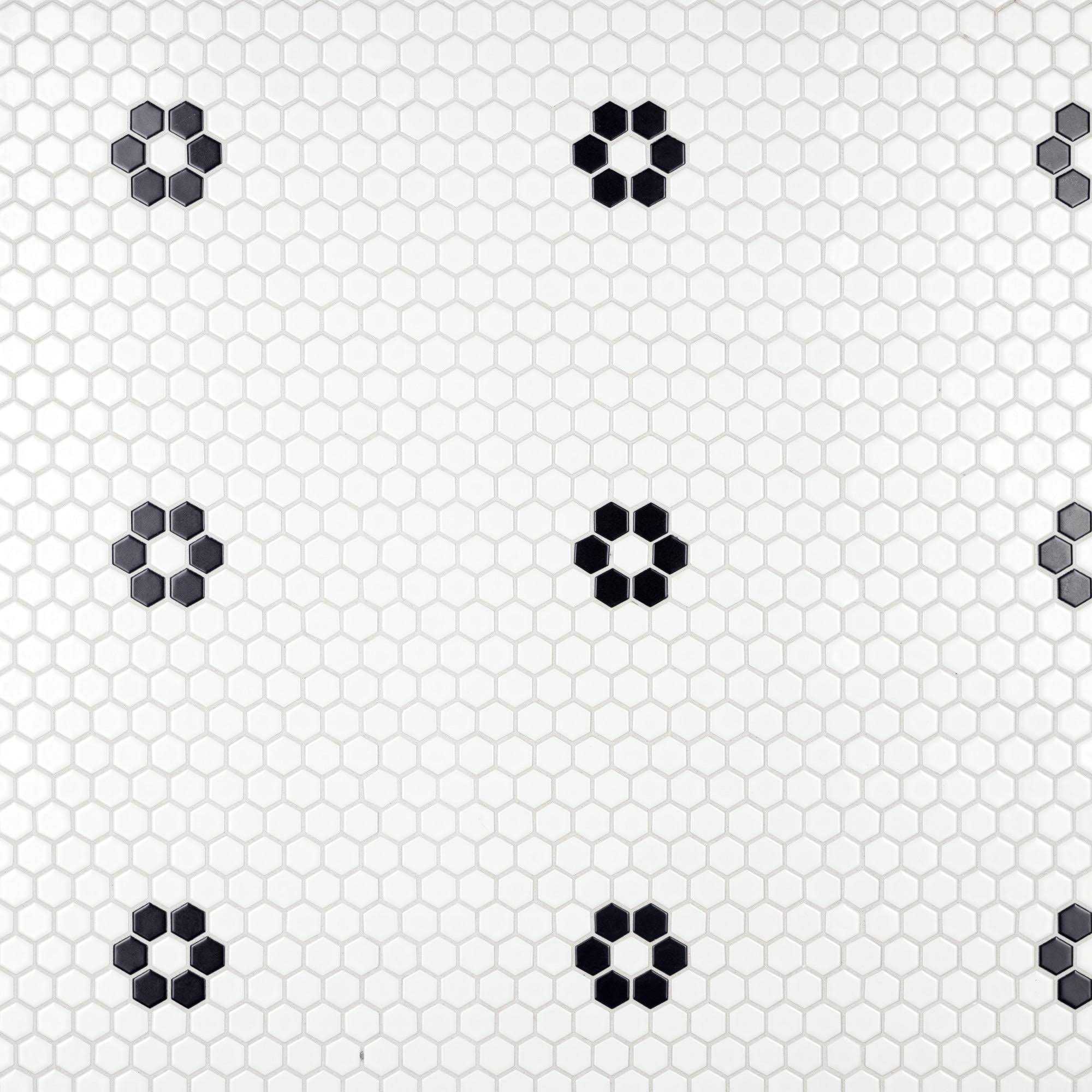 SomerTile Fxlm1hms Retro Hex Snowflake Porcelain Floor and Wall Tile 10.25" x 11.75" Matte White/Black