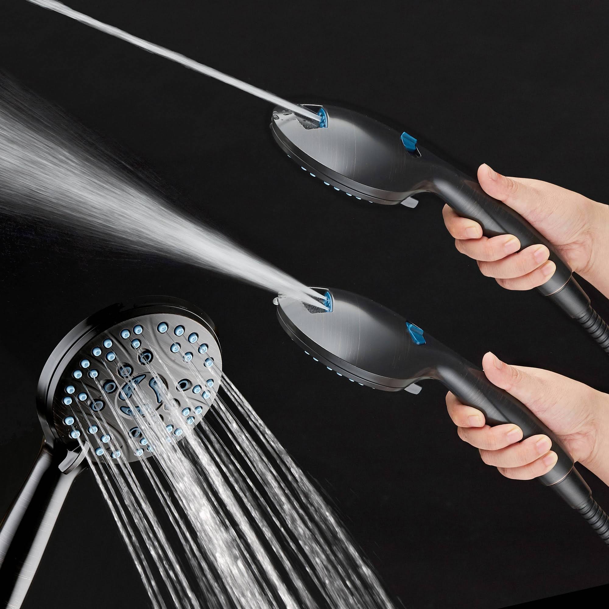 AquaCare As-seen-on-tv High Pressure 8-Mode Handheld Shower Head- Antimicrobial Nozzles, Built-in Power Wash to Clean Tub, Tile & Pets, Extra Long 6