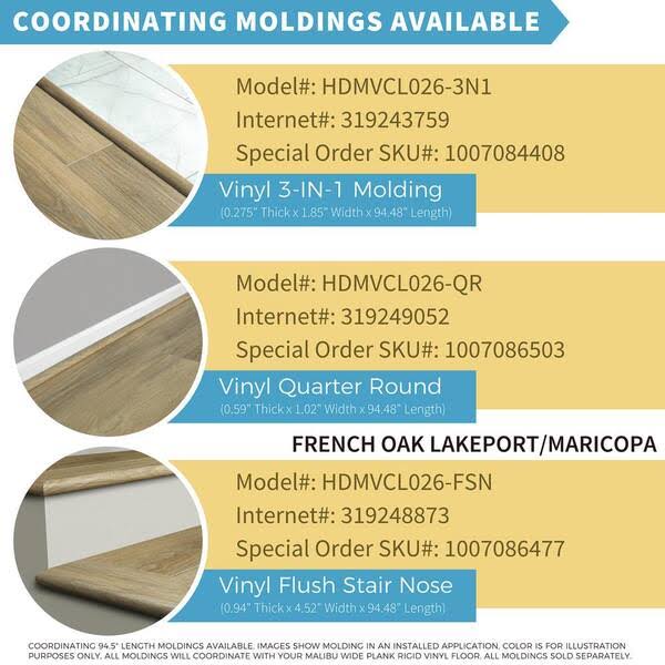 Malibu Wide Plank French Oak Lakeport/Maricopa 0.944 in. Thickness x 4.527 in. Width x 94.48 in. Length Vinyl Flush Stair Nose Molding, Light